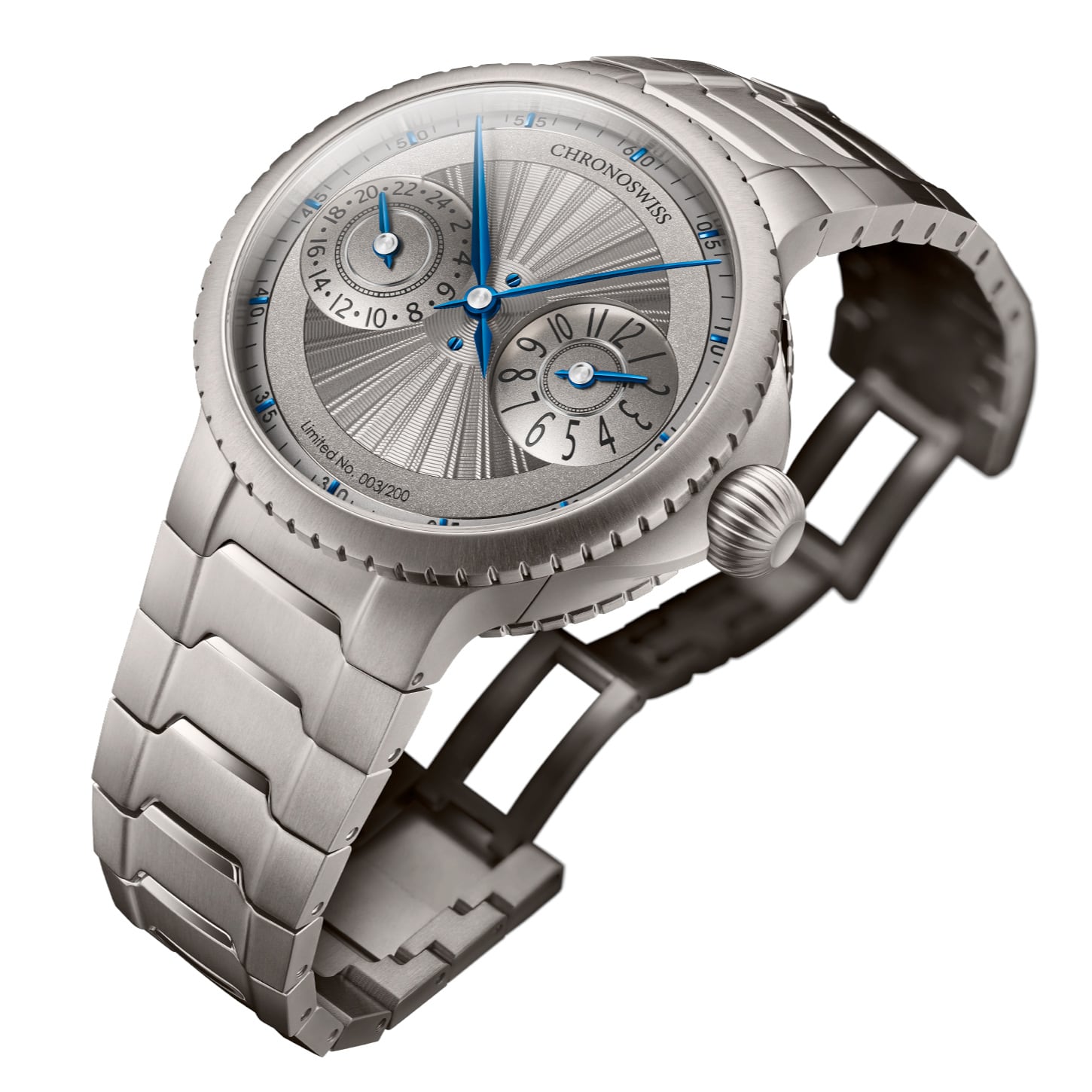 For the first time in Chronoswiss history, the case and bracelet become one. The integrated Grade 5 titanium bracelet of the Pulse GMT is the sleekest, most fluid design ever crafted by the Atelier Lucerne. Engineered for seamless movement and modern elegance, it ensures unparalleled comfort, strength, and precision, redefining the way a Chronoswiss wears on the wrist.