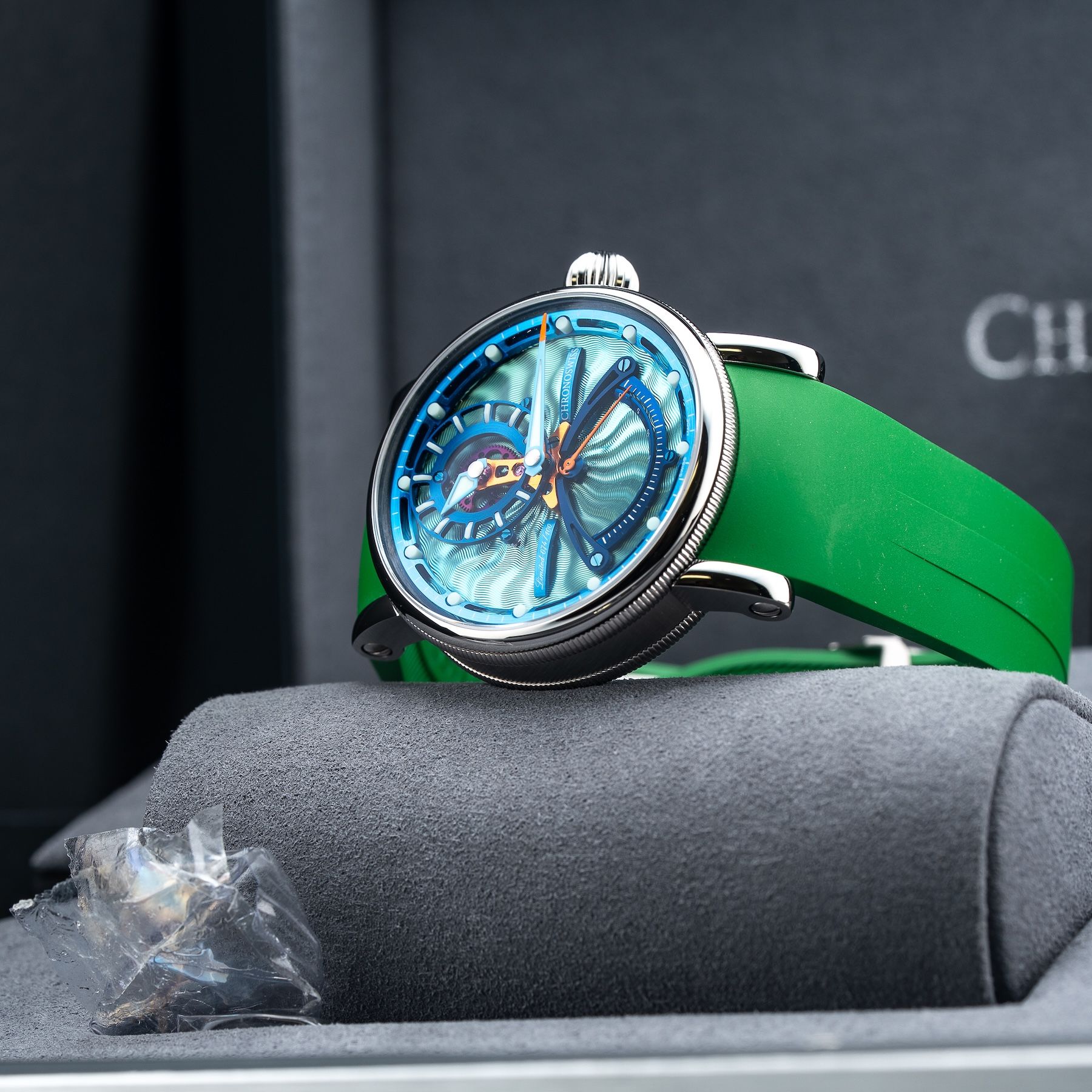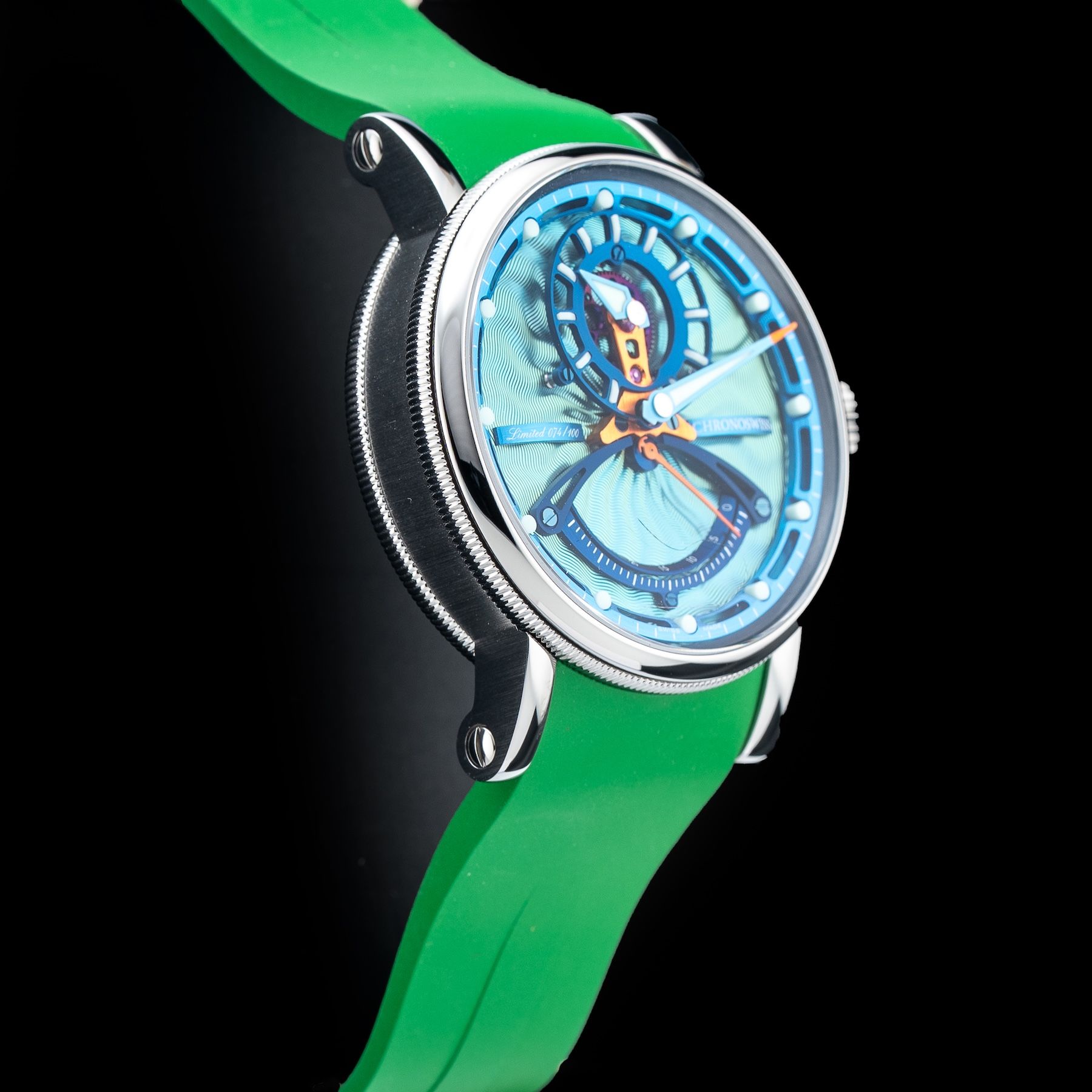 The new Chronoswiss ReSec Green Monster Manufacture pays homage to the 1960s Bonneville speed legends. Featuring the new Manufacture Calibre C.6005, it's a horological marvel with a guilloché dial that magically shifts from green to blue. Encased in 42mm of Grade 5 titanium and limited to 100 pieces, it embodies the thrill of speed and modern craftsmanship.