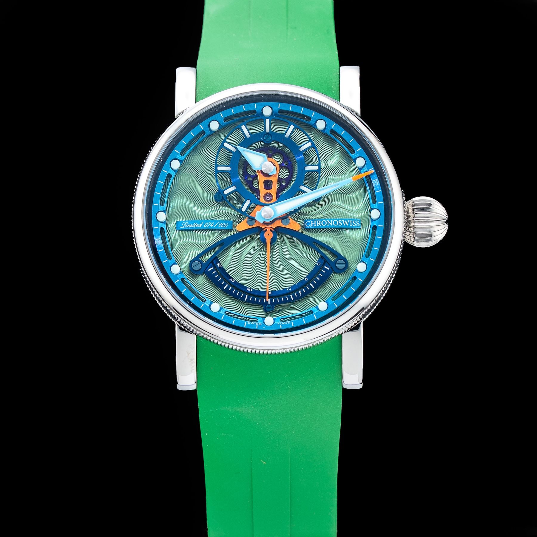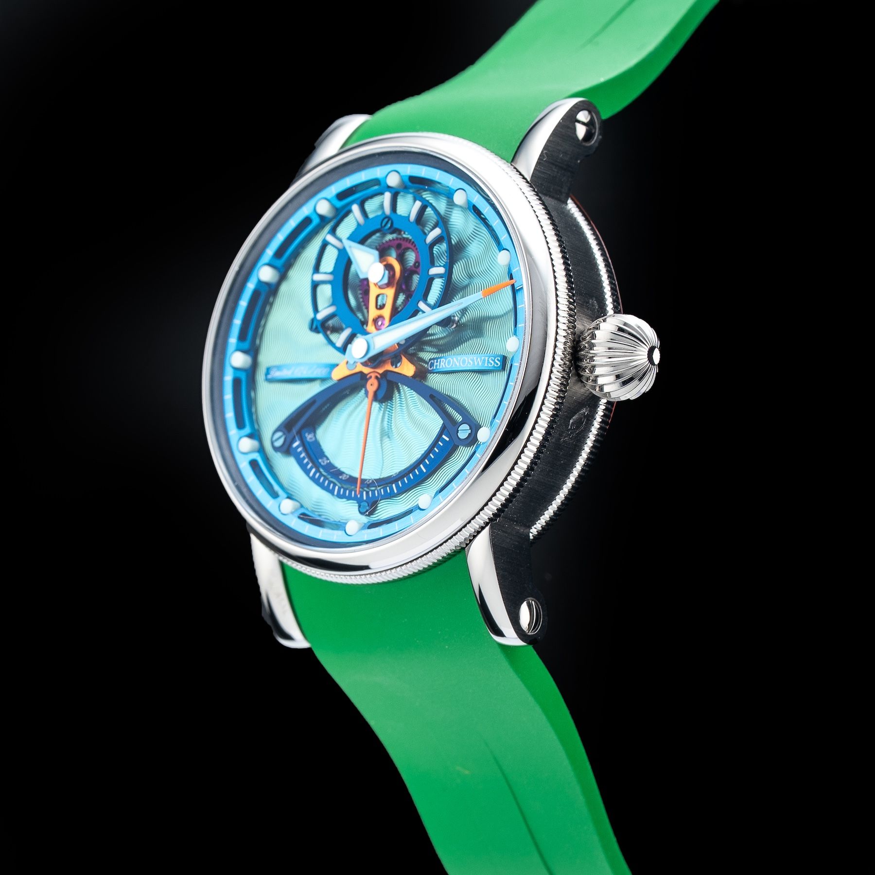 Chronoswiss harnesses the versatility of CVD coatings to infuse watch cases and dials with vibrant hues like blue, purple, and color-shifting tones. This complex gas-phase process enables precise, uniform coatings even on complex surfaces, optimizing for durability, resistance, and aesthetic appeal.