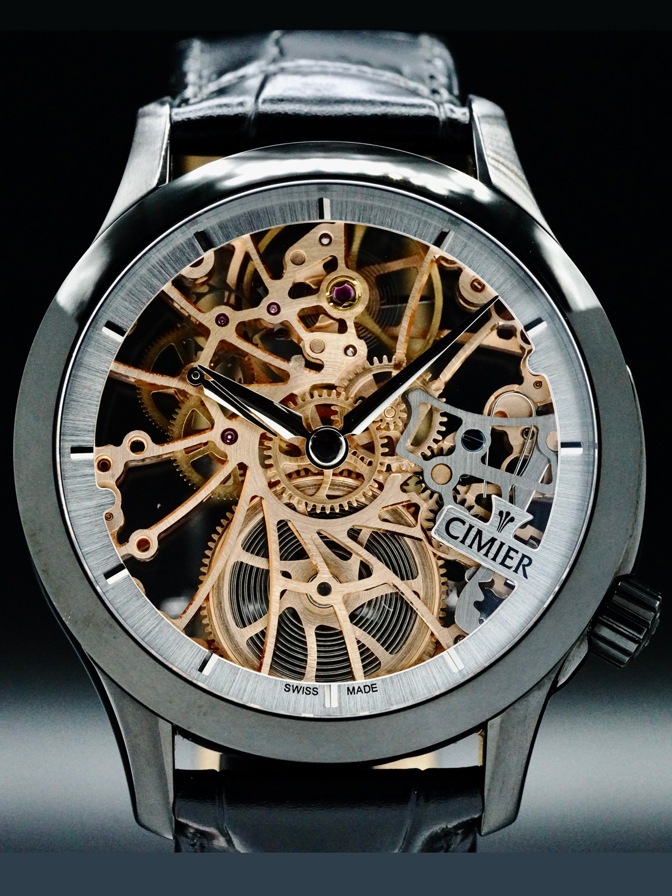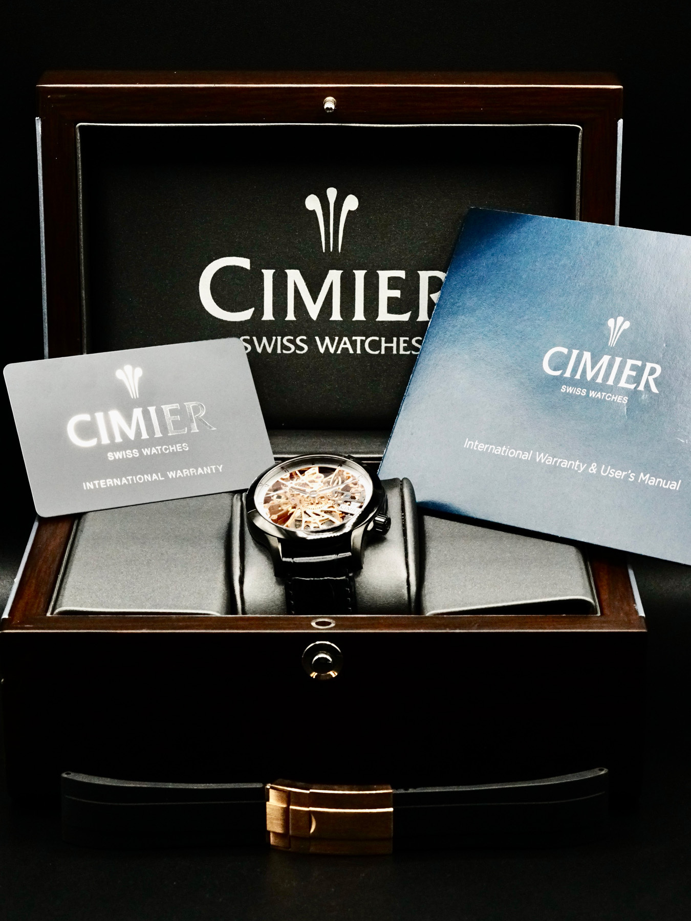 This Cimier Royal Skeleton CI69-BP131 is in GREAT condition. This watch includes its original box, instruction booklet and warranty card dated May 2023. This watch has been fully authenticated and certified by Exquisite Timepieces. Extra generic strap.