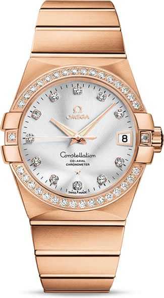 This model features a silver dial decorated with diamond-set indexes and a date window at the 3 o'clock position, and covered by a scratch-resistant sapphire crystal. The diamond-set bezel is mounted on a 38 mm 18K red gold case, and presented on an 18K red gold bracelet.