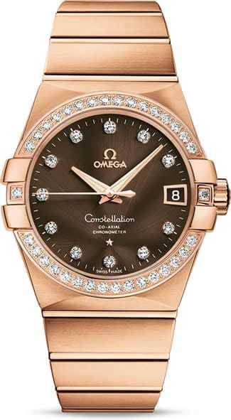 - This timepiece features a 38mm gold and diamonds case paired with a high quality gold bracelet. It showcases a distinctive brown dial and is powered by a precise automatic winding movement. The watch is designed with a water resistance of up to 30m.