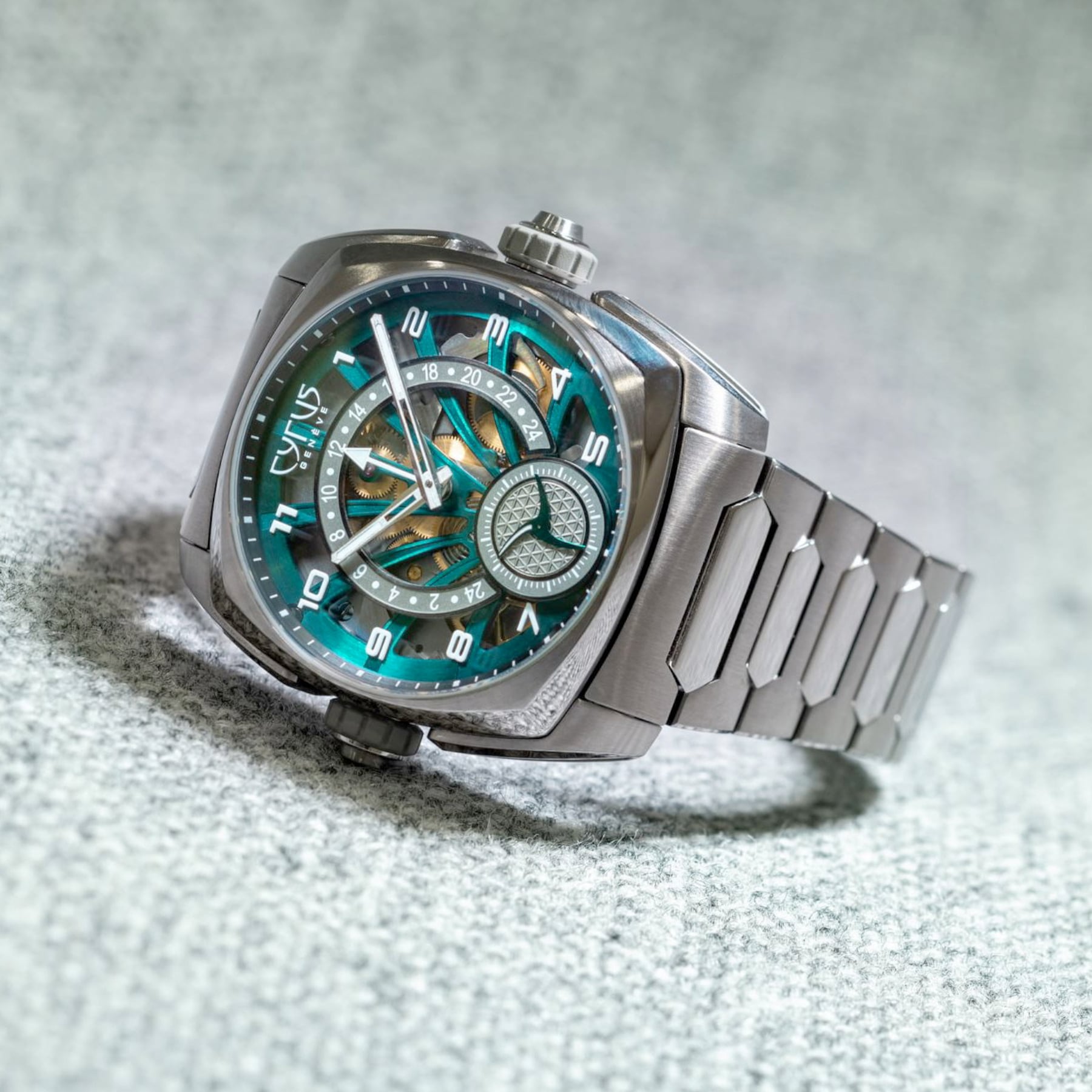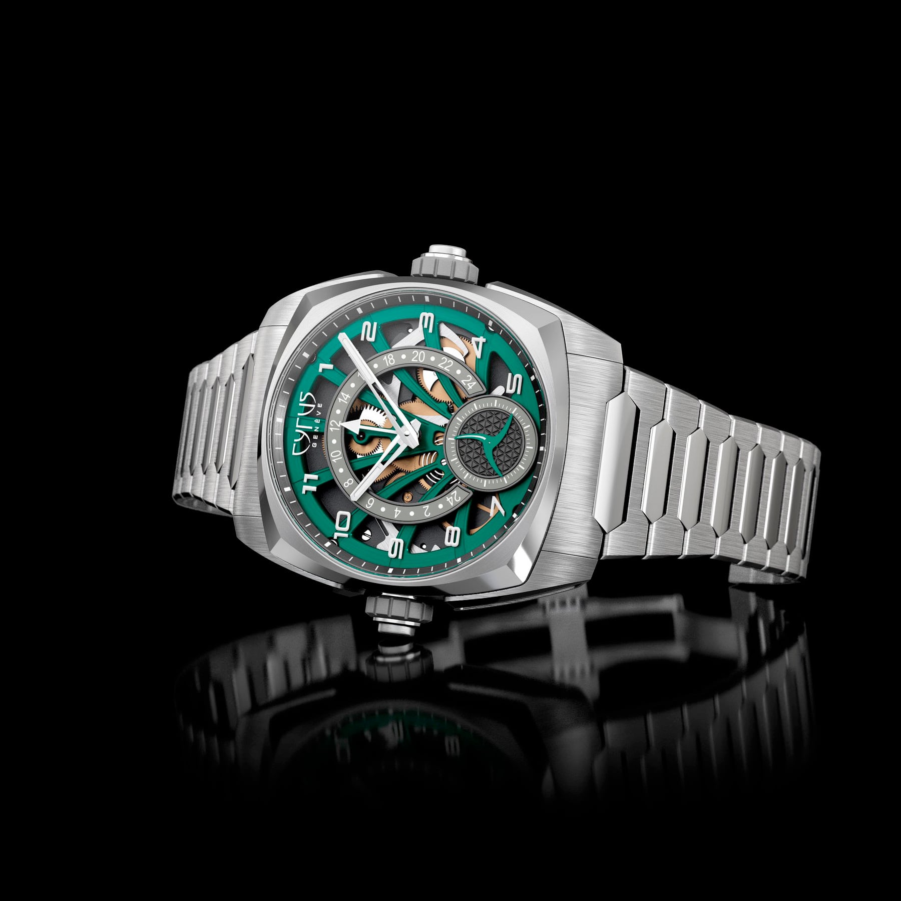 We live in a time when many people travel the world, for business or pleasure. Therefore, the Cyrus Genève collection could not miss a watch capable of providing a dual time zone, easy to adjust and immediately readable. The Klepcys GMT Retrograde was thus born, with its retrograde 24-hour second time-zone hand adjustable via the crown at 3 o'clock. A pressure on the crown at 9 o'clock moves the hand forward by one hour, quickly setting the desired local time.