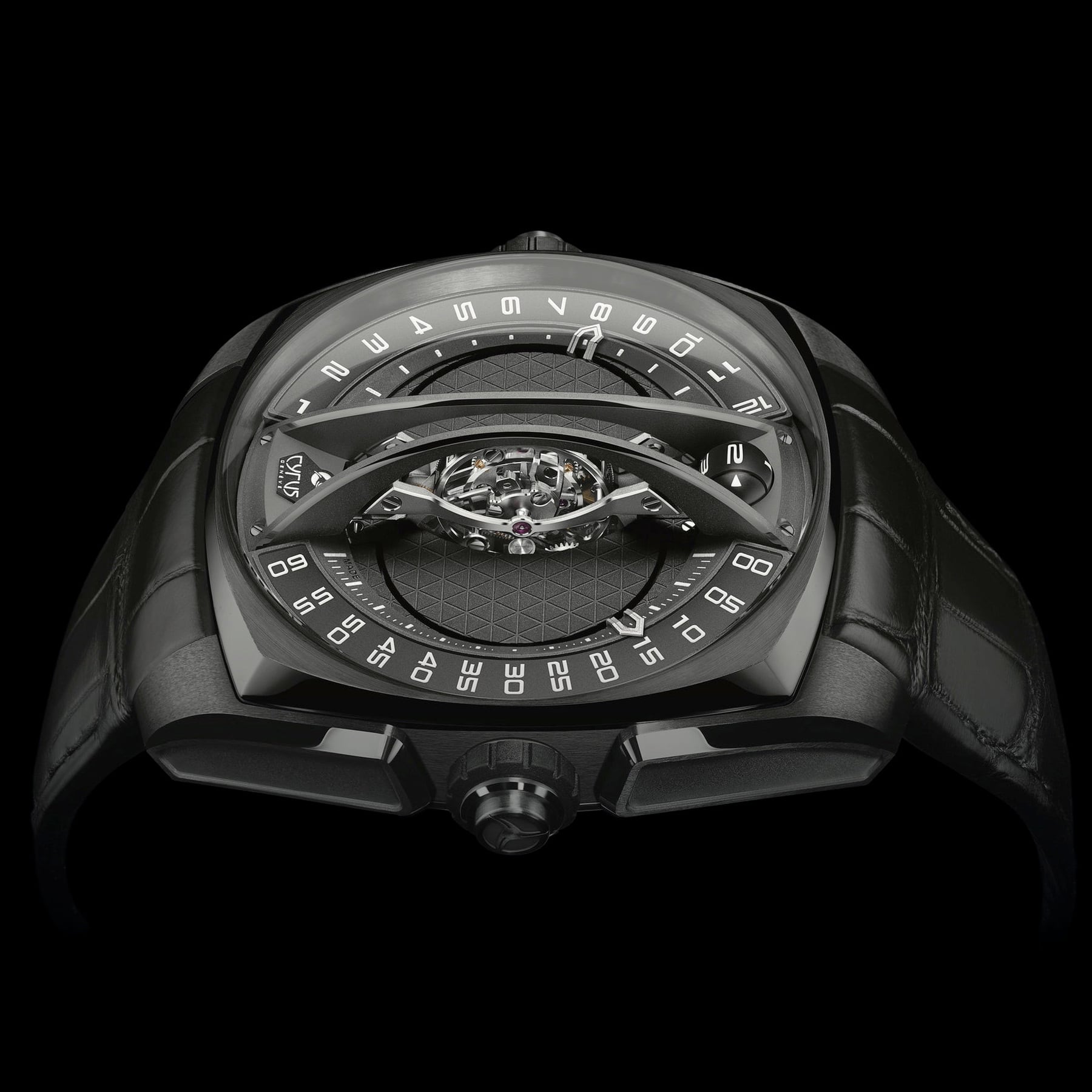 For the first time in history, CYRUS has placed a tourbillon in the middle of the dial on a vertical axis in a wristwatch. By doing so, this breaks the age-old rule that finds the tourbillon normally on its horizontal axis at 6 o’clock on the dial. This break from tradition wasn’t done simply for aesthetics.