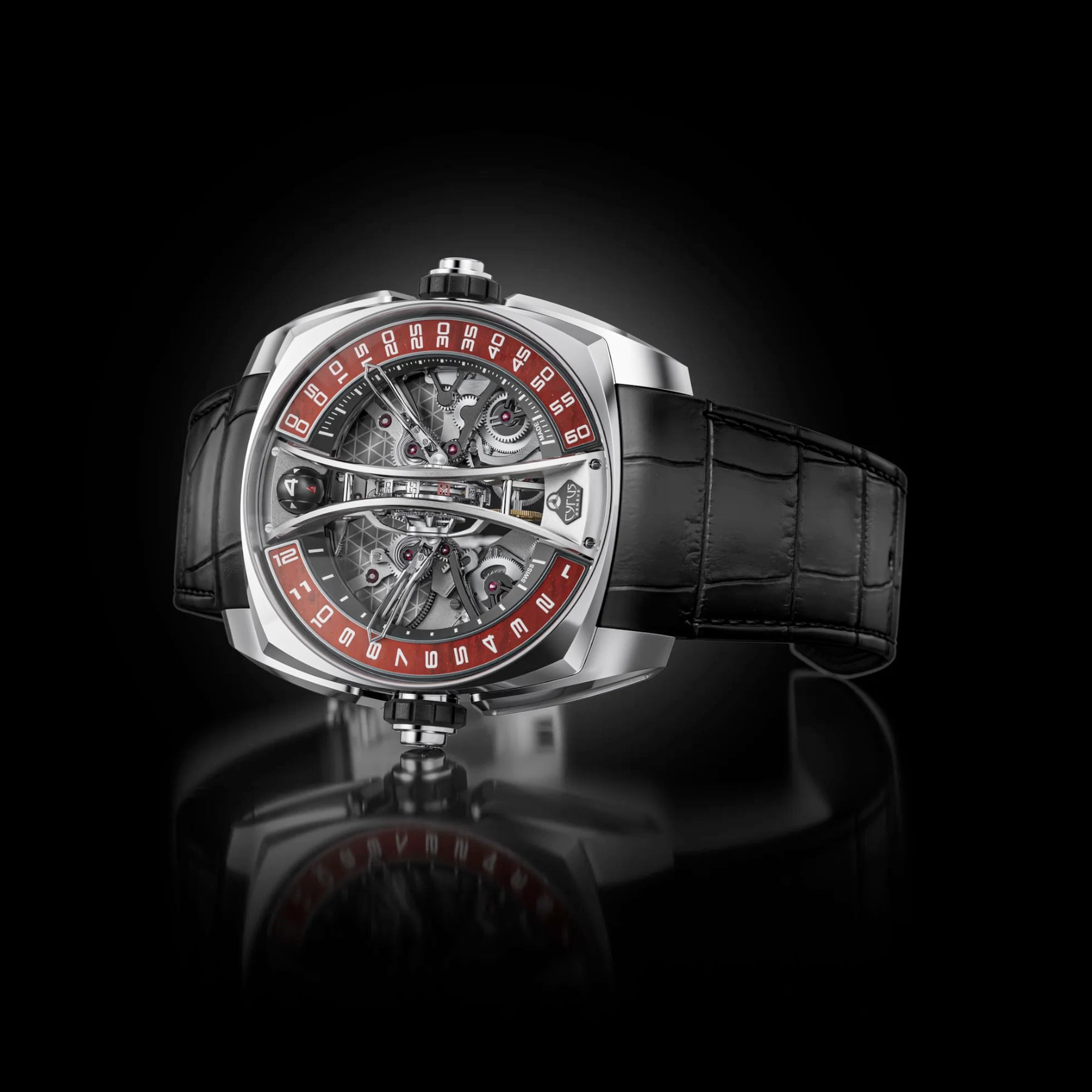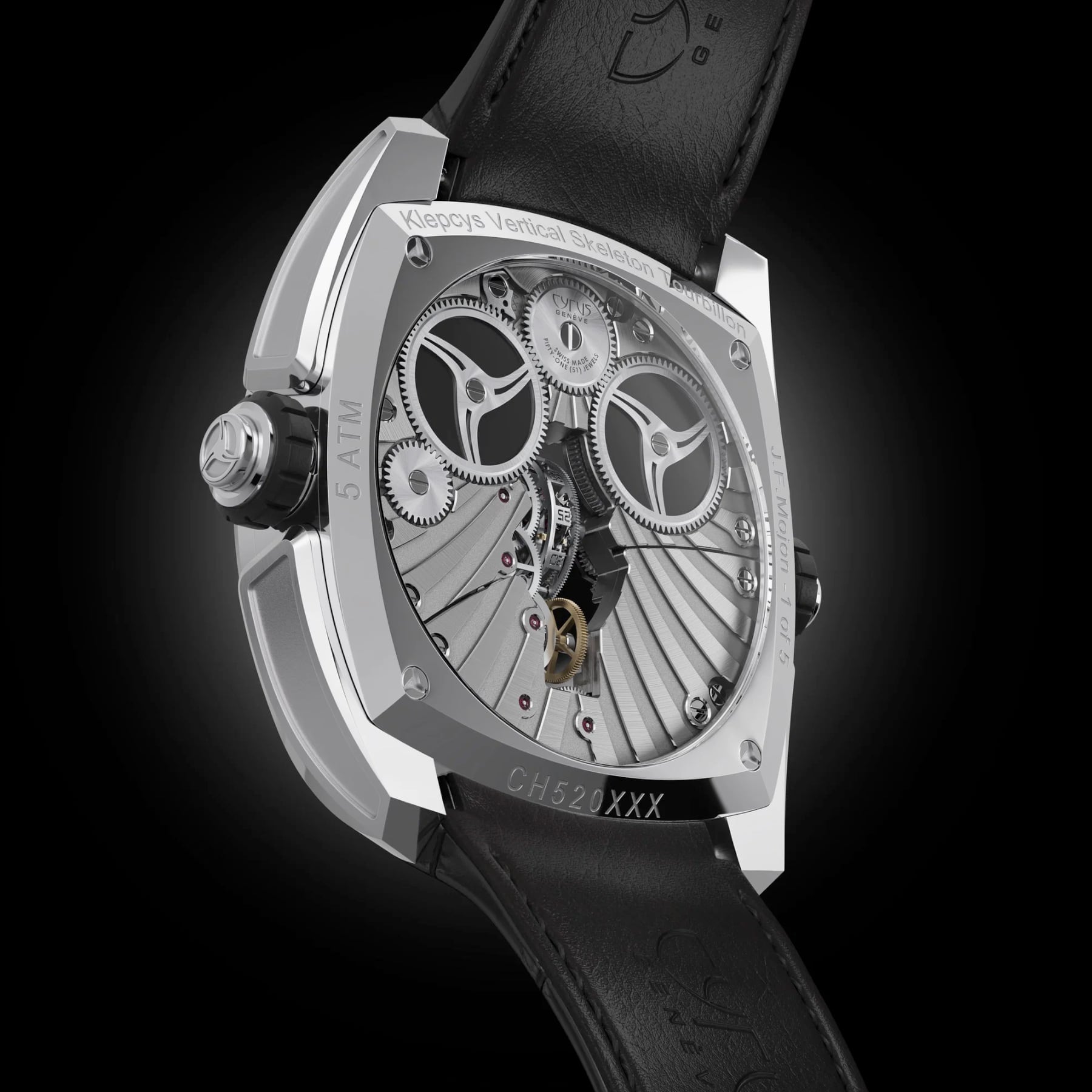 For the first time in history, CYRUS has placed a tourbillon in the middle of the dial on a vertical axis in a wristwatch. By doing so, this breaks the age-old rule that finds the tourbillon normally on its horizontal axis at 6 o’clock on the dial. This break from tradition wasn’t done simply for aesthetics.