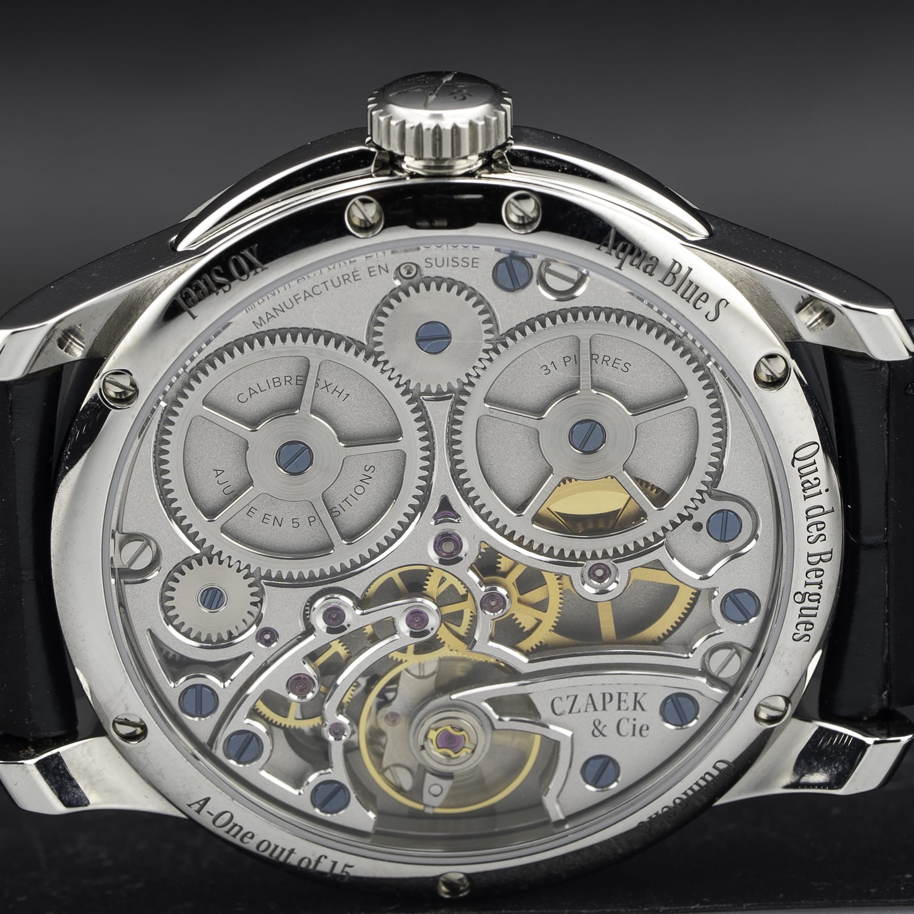 Mechanical Manual, Caliber SXH1, Power-reserve > 168 hours double open ratchets, sandblasted bridges, blue screws, bevelling, final anglage main