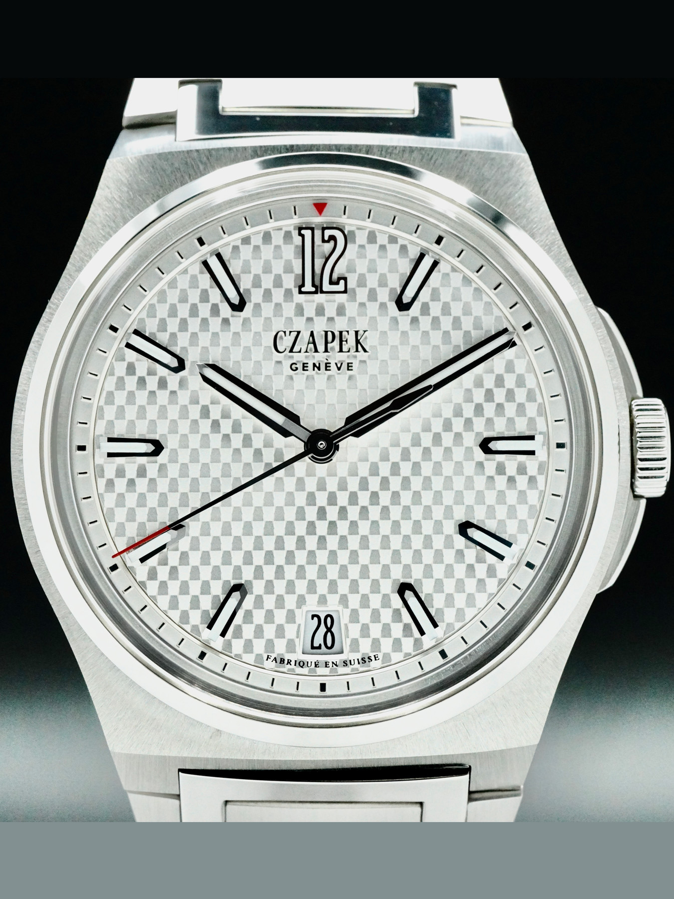 Automatic movement powered by Czapek Caliber SXH5 with a power reserve of approximately 60 hours. Water resistance up to 100 meters.