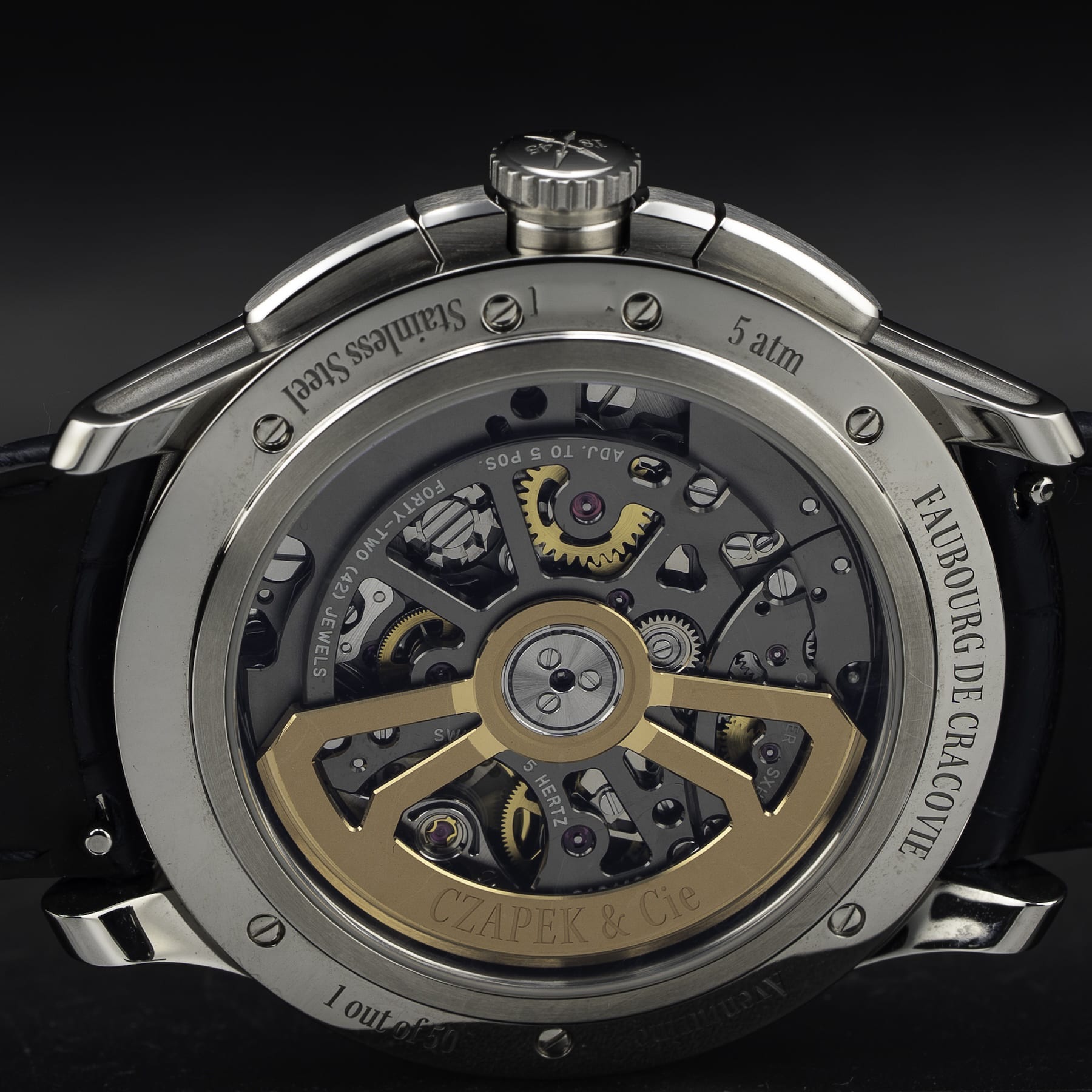 - This timepiece features a 41.5mm steel case paired with a high quality leather strap. It showcases a distinctive blue dial and is powered by a precise automatic winding movement. The watch is designed with a water resistance of up to 50m.