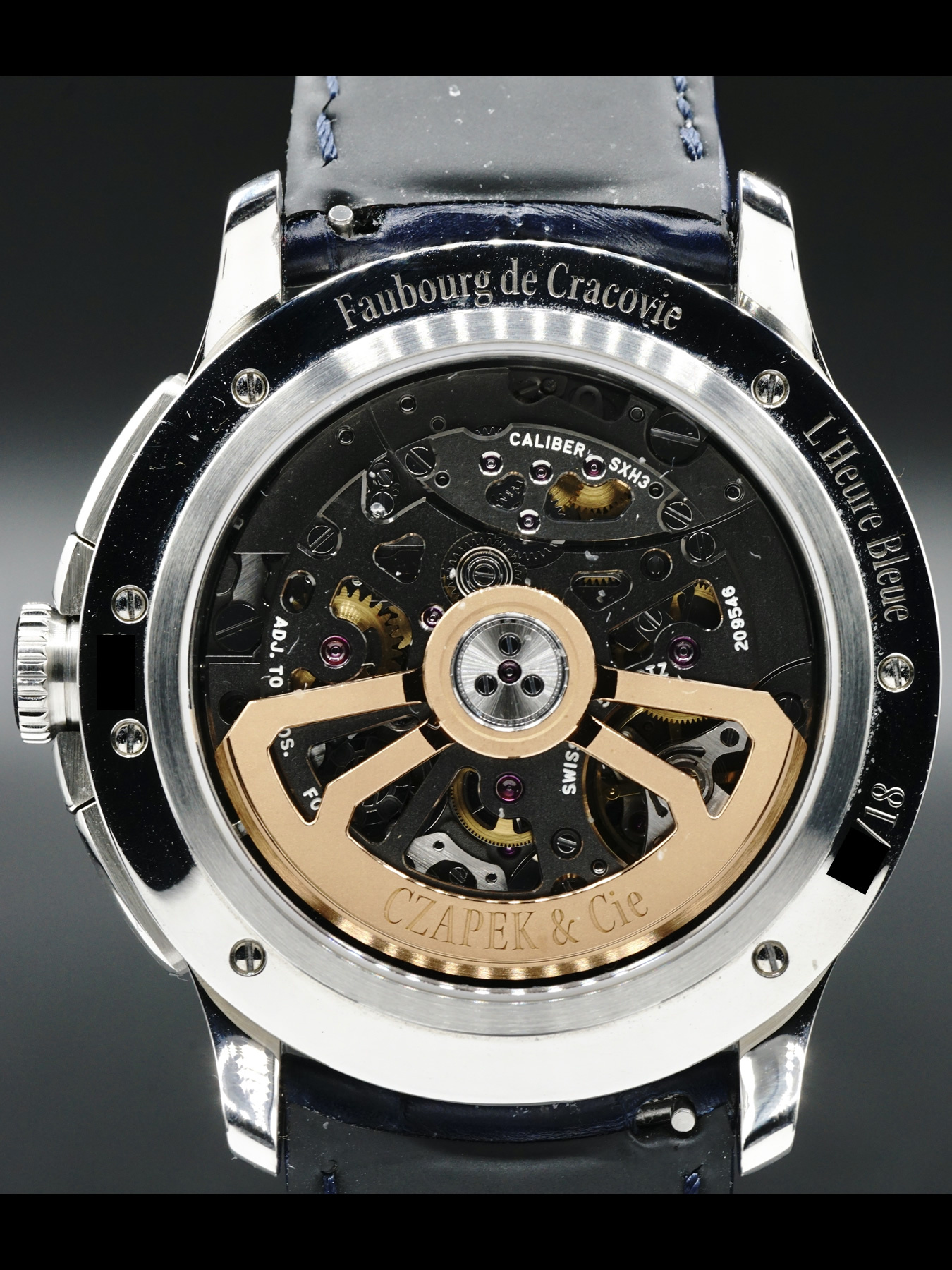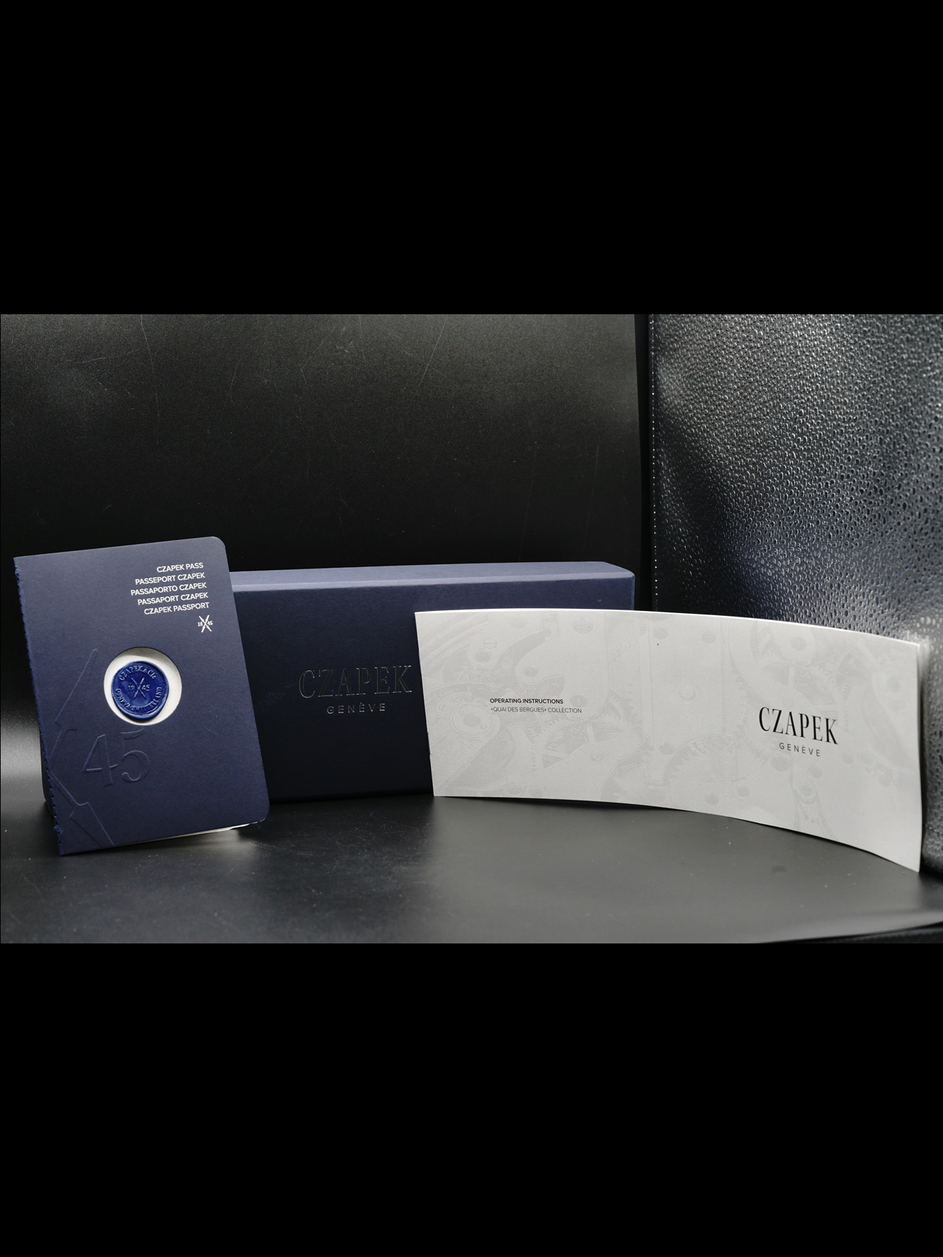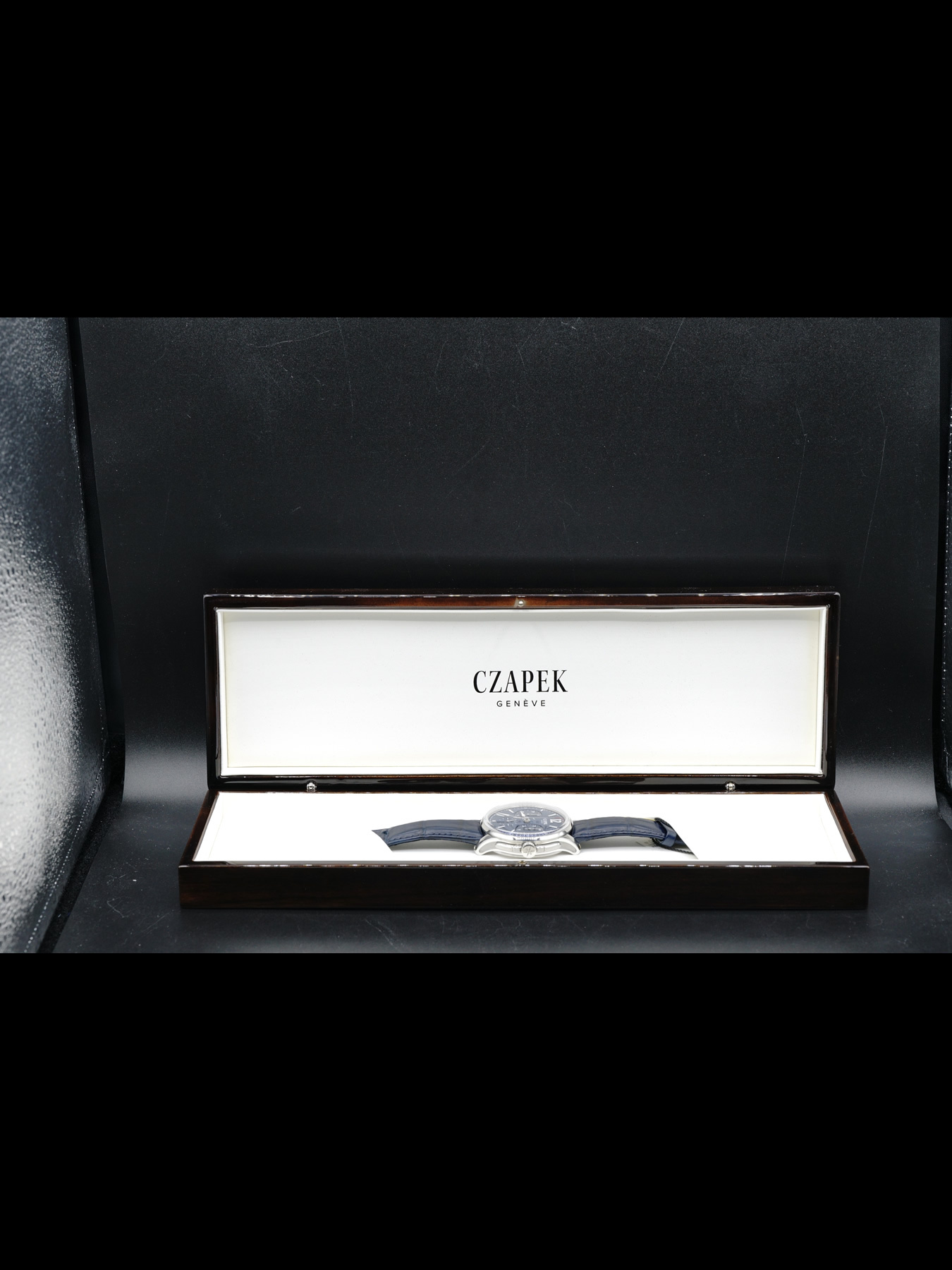 This Czapek Faubourg de Cracovie L'Heure Bleue is in EXCELLENT condition. This watch includes its original box, operating instructions, Czapek passport, and international warranty dated for October 2021.
