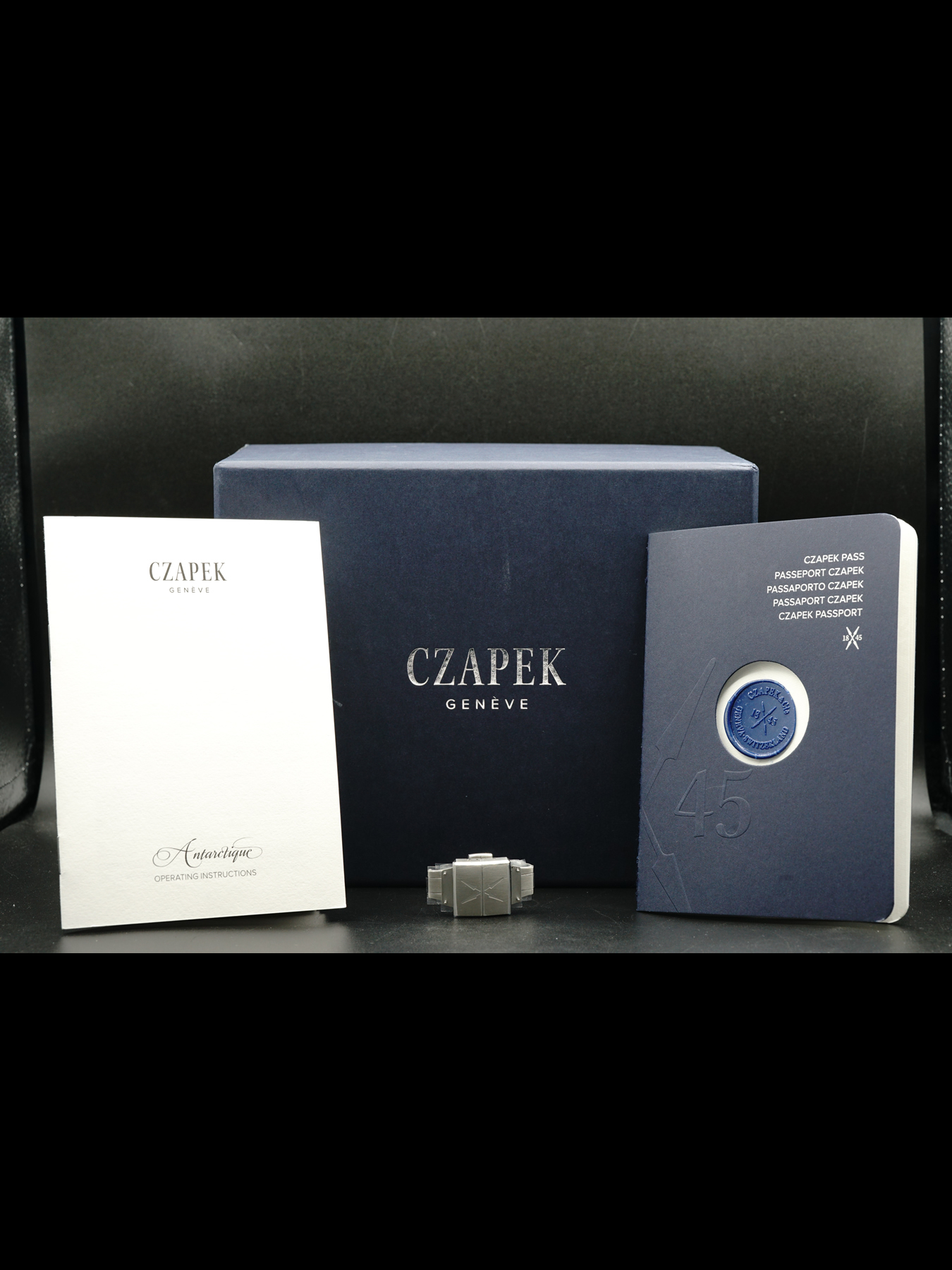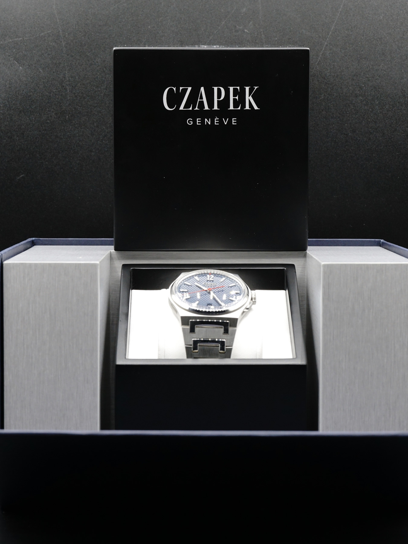 Powered by Czapek Caliber SXH5 for a power reserve of approximately 56 hours. Water resistance up to 120 meters.