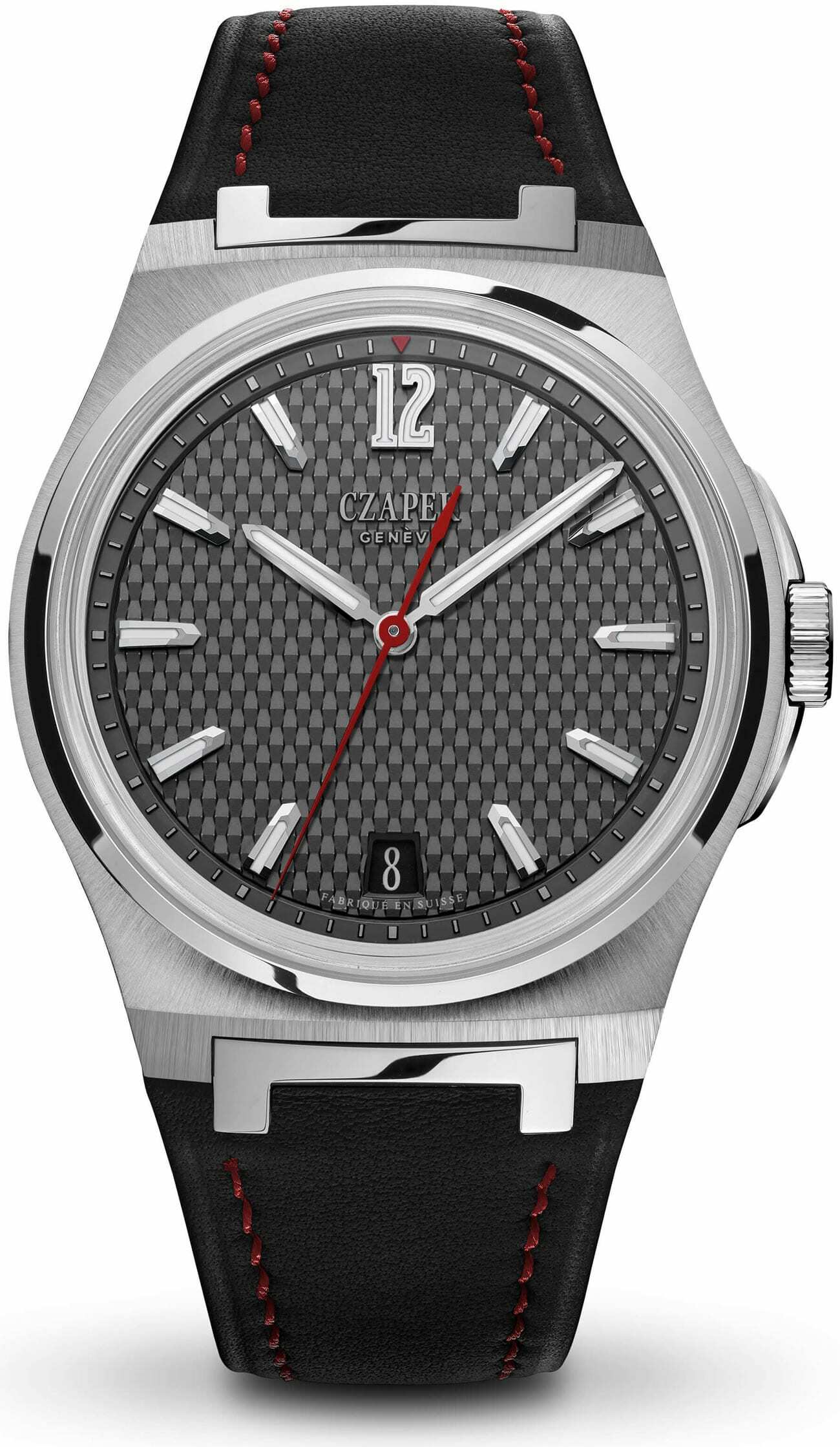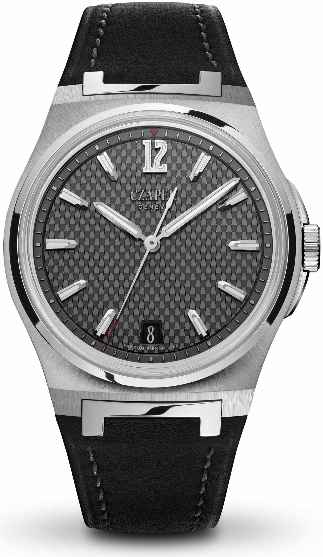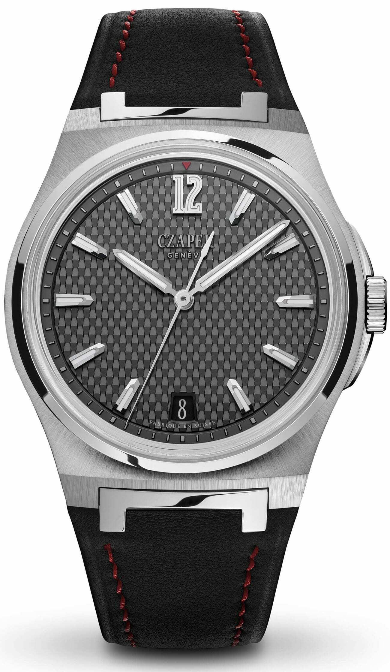 The Antarctique Passage de Drake collection comes in a 40.5mm stainless steel case that is fitted to an ergonomic brushed integrated bracelet, whose brushed links are connected with highly polished links in the form of a “C” for Czapek. The bracelet features a quick-change system so each owner can quickly and easily switch to a rubber strap that is decorated with the same trapezoid pattern found on the dial.