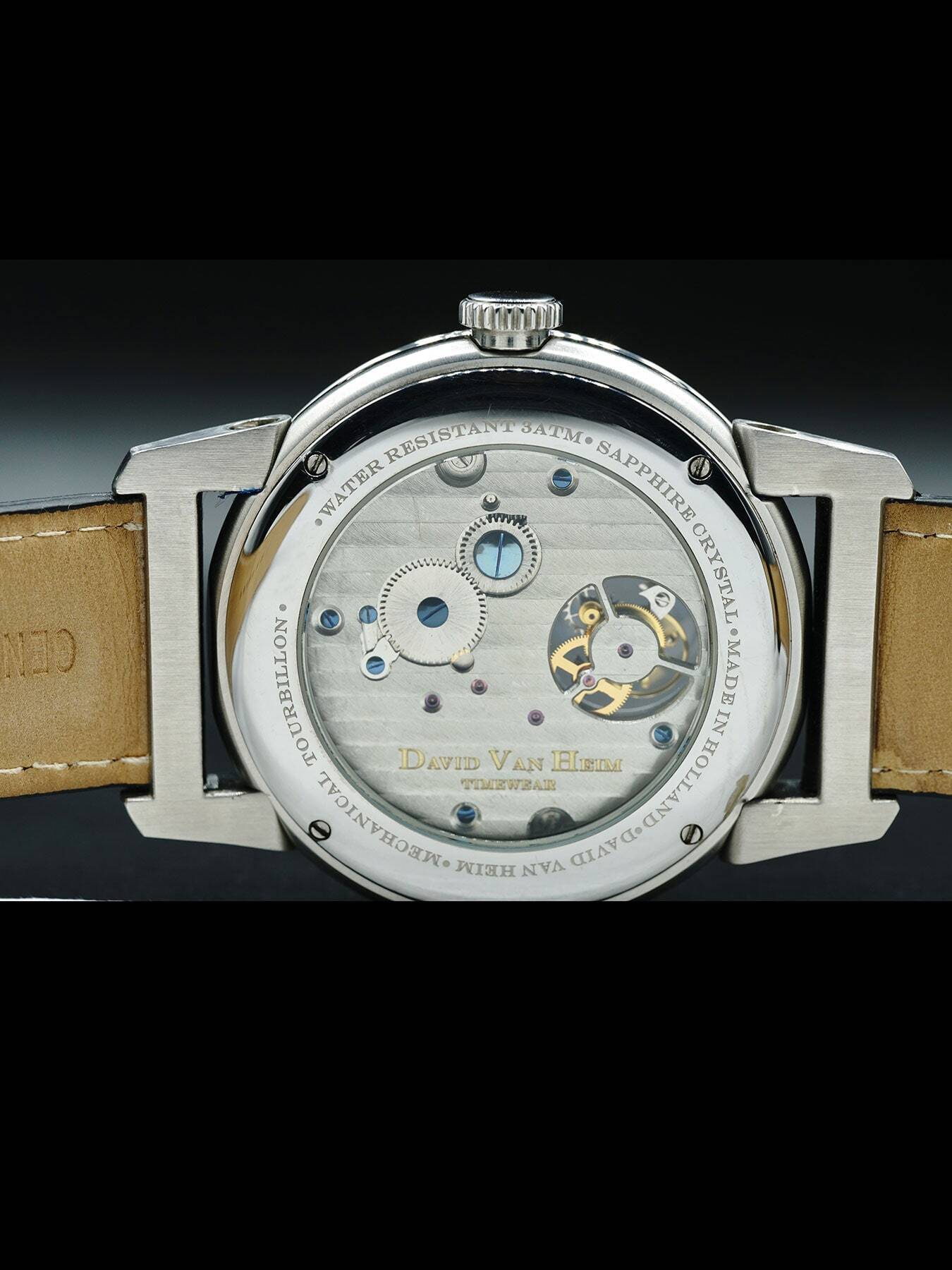 This David Van Heim Tourbillon VH-302 is in EXCELLENT condition. This watch includes its original box and certificate of authenticity card dated for October 2017.