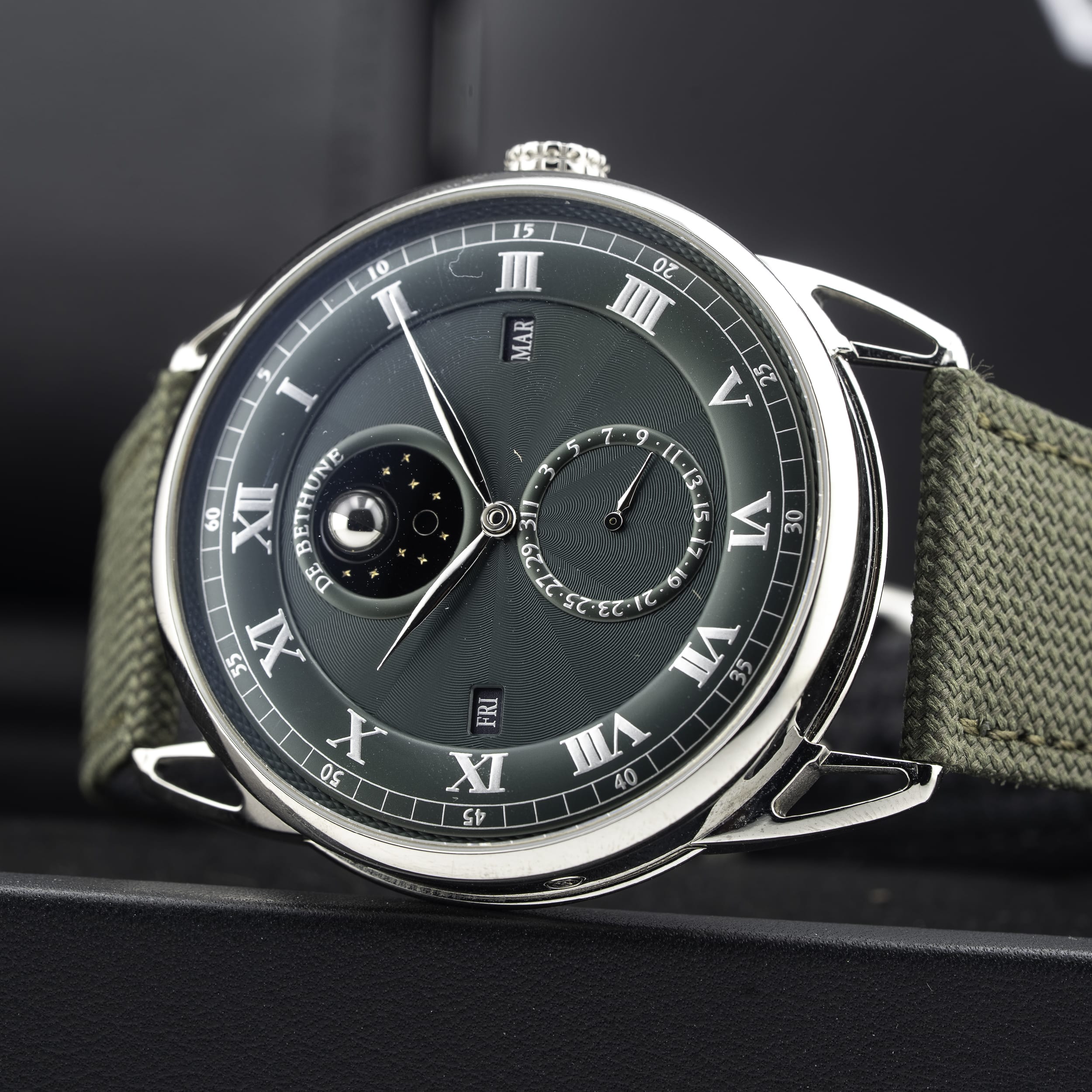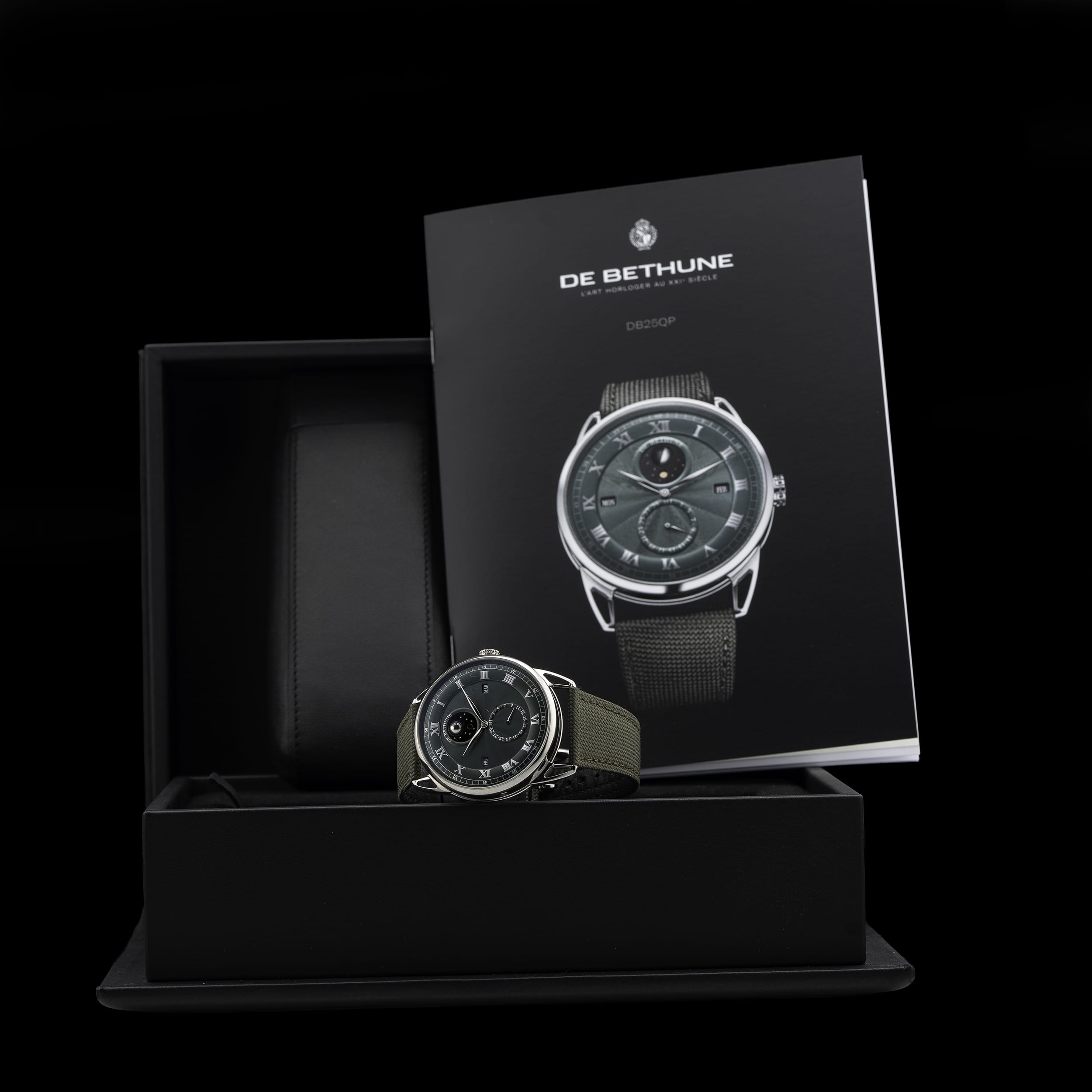 This De Bethune Perpetual Calendar Green Dial Titanium DB25QPATIS4 is in GREAT condition. This watch includes its Original Box, Original Papers and warranty card. This watch has been fully authenticated and certified by Exquisite Timepieces. Please note, the photos shown are of the actual watch you will receive.
