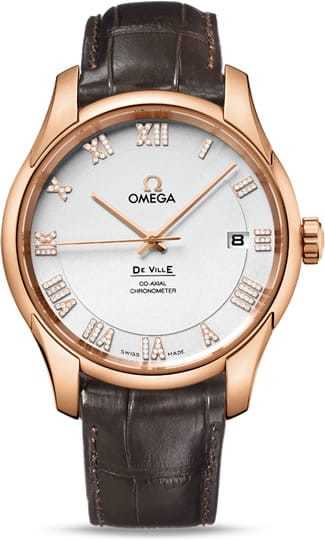 Each of OMEGA's elegant De Ville timepieces is characterized by a unique and classic design. This model features a two-zone silver dial with Roman numeral hour indexes fashioned from 18K gold and set with diamonds.