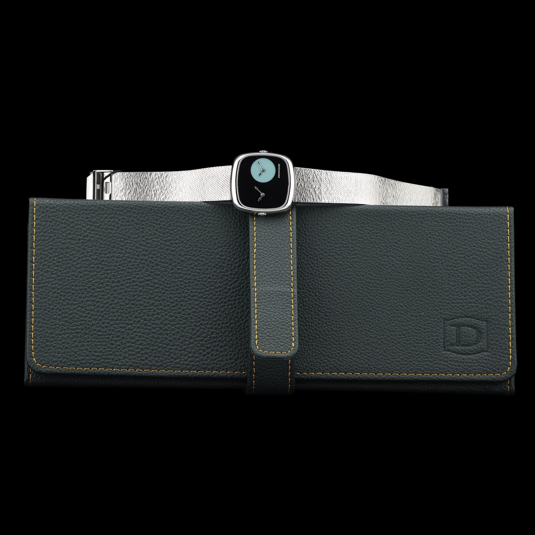 This Dennsion Dual Time Capsule Collection Ll is in GREAT condition. This watch includes its Original Box, Original Papers and Warranty Card Not Dated. This watch has been fully authenticated and certified by Exquisite Timepieces. Please note, the photos shown are of the actual watch you will receive.