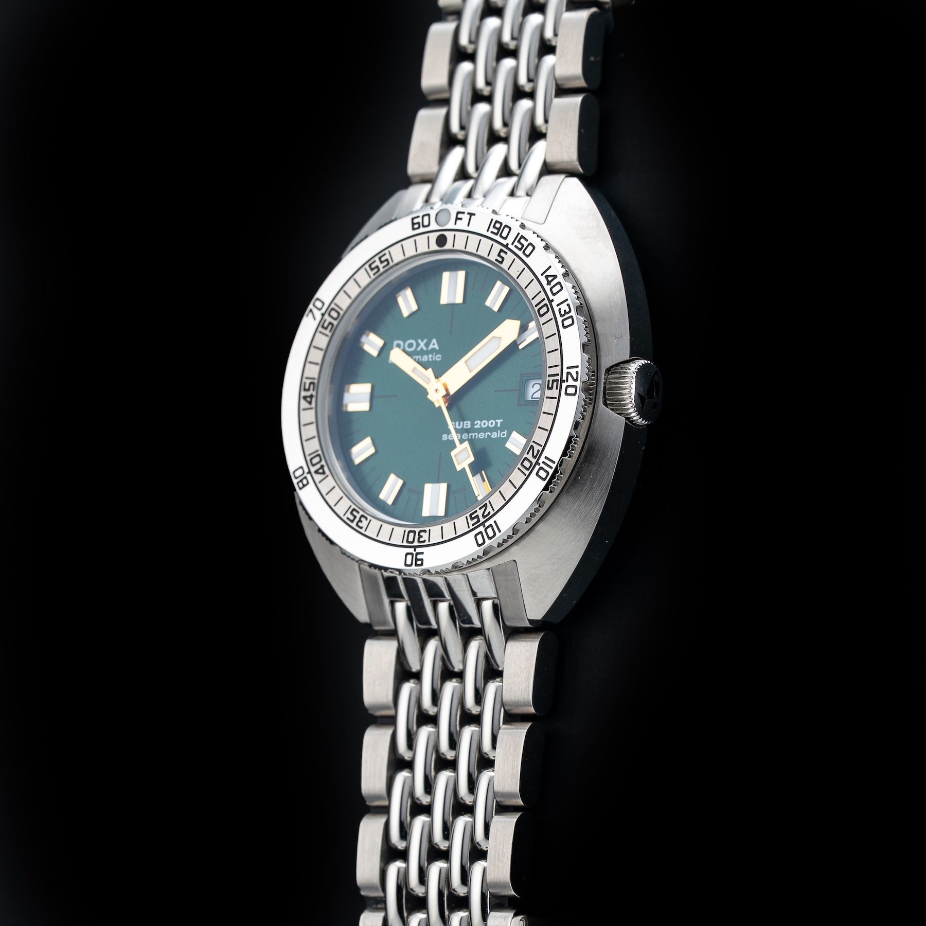 This Doxa 804.10.131S.10 Sub 200T Sea Emerald is in GREAT condition. This watch includes its Original Box, Original Papers and Warranty Card dated 04/12/2025. This watch has been fully authenticated and certified by Exquisite Timepieces.Please note, the photos shown are of the actual watch you will receive.
