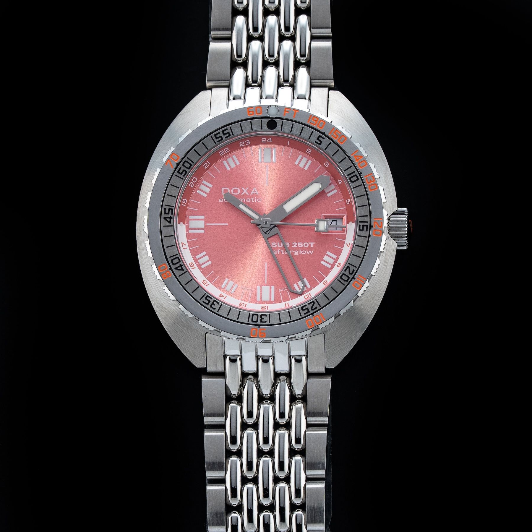This DOXA SUB 250T GMT Afterglow Limited Edition 855.10.061.10-SE11 is in GREAT condition, it has box, papers and warranty card. This watch has been fully authenticated and certified by Exquisite Timepieces. Please note, the photos shown are of the actual watch you will receive.