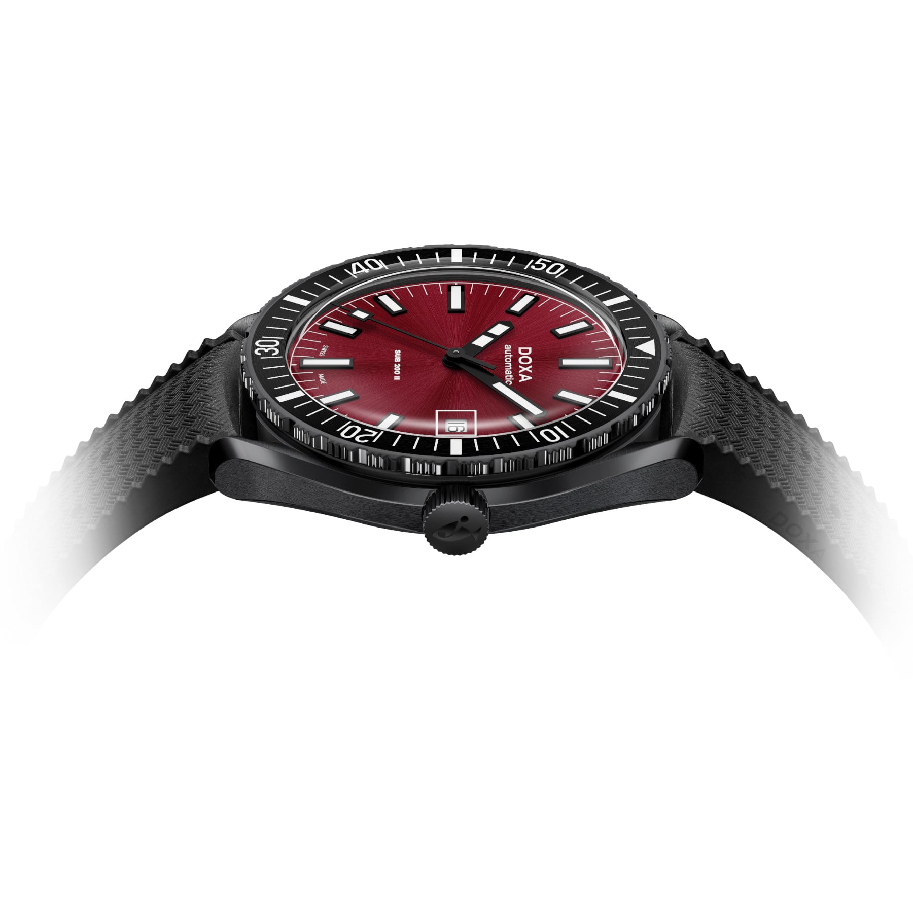 More than a stylistic detail, this treatment adds texture while maintaining DOXA’s hallmark legibility. The contrast between the gleaming center and the darker periphery reinforces the dial’s presence without disturbing its equilibrium, giving the SUB 200 II a more nuanced, contemporary personality – while keeping it firmly anchored in its professional dive watch heritage.
