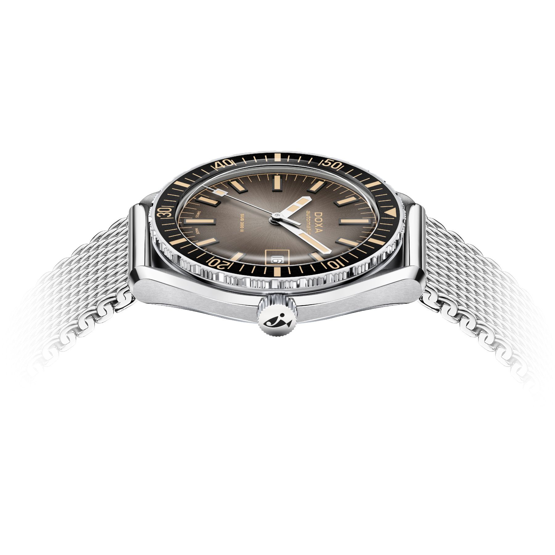 The SUB 200 II is the first DOXA collection to feature a fumé dial, Introducing a new, subtly retro visual depth to the SUB line.