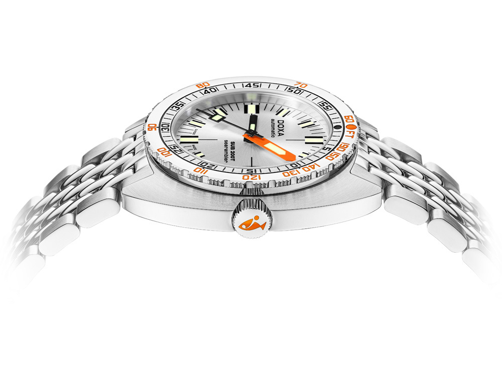 The new SUB 200T skillfully retains all of the original SUB’s DNA while embracing modern style and sophistication with its smaller diameter. In reworking the spatial volumes inside the case to bring it down to an elegant 39 mm diameter and a more wearable thickness of 10.70 mm, DOXA has also tweaked the dial design to achieve a more contemporary visual presence on the wrist.