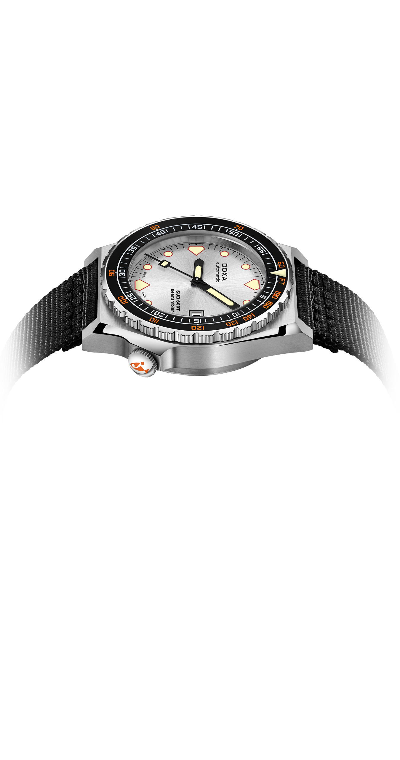 All dive-related indications are coated with luminescent Super-LumiNova®, including the distinctive ‘shark tooth’ markers at 3, 6, 9 and 12 o'clock, for optimal readability in low light conditions. This collection is available with a NATO strap to match the dial color or with the new 316L stainless steel bracelet that brings a ‘modern vintage’ touch to the DOXA collection.