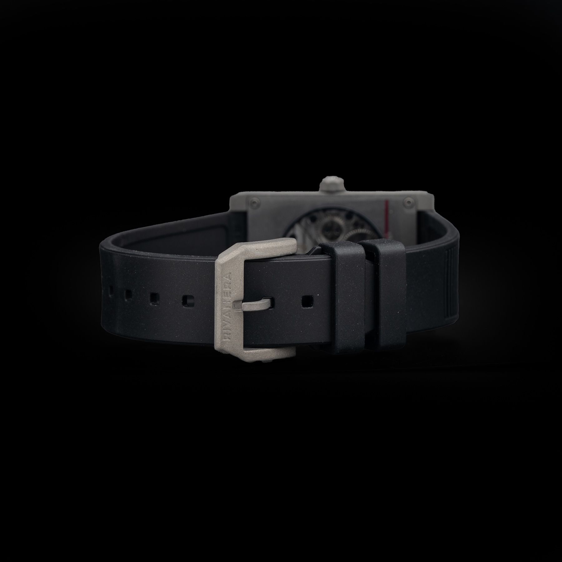 - This timepiece features a 40mm titanium case paired with a high quality rubber strap. It showcases a distinctive grey dial and is powered by a precise manual winding movement. The watch is designed with a water resistance of up to 30m.
