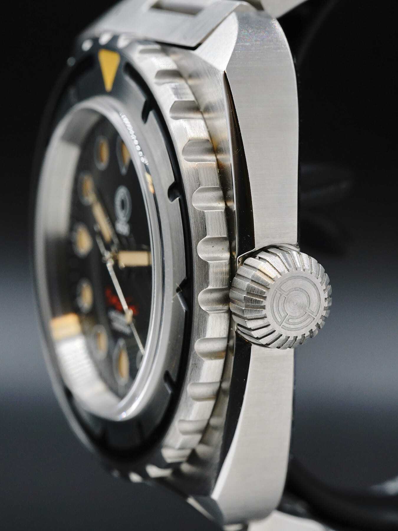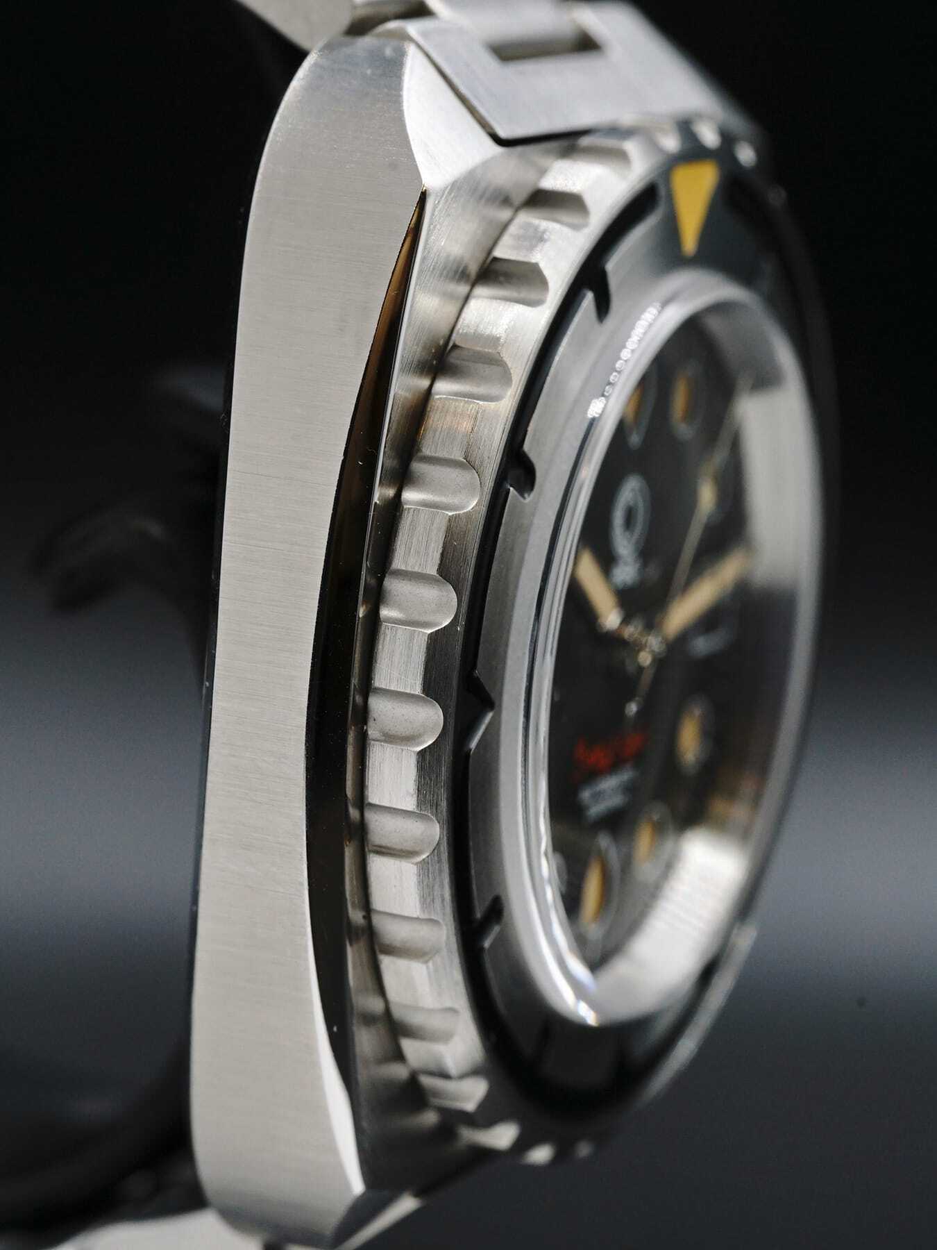 - This timepiece features a 44mm steel case paired with a high quality steel bracelet. It showcases a distinctive grey dial and is powered by a precise automatic winding movement. The watch is designed with a water resistance of up to 600m.