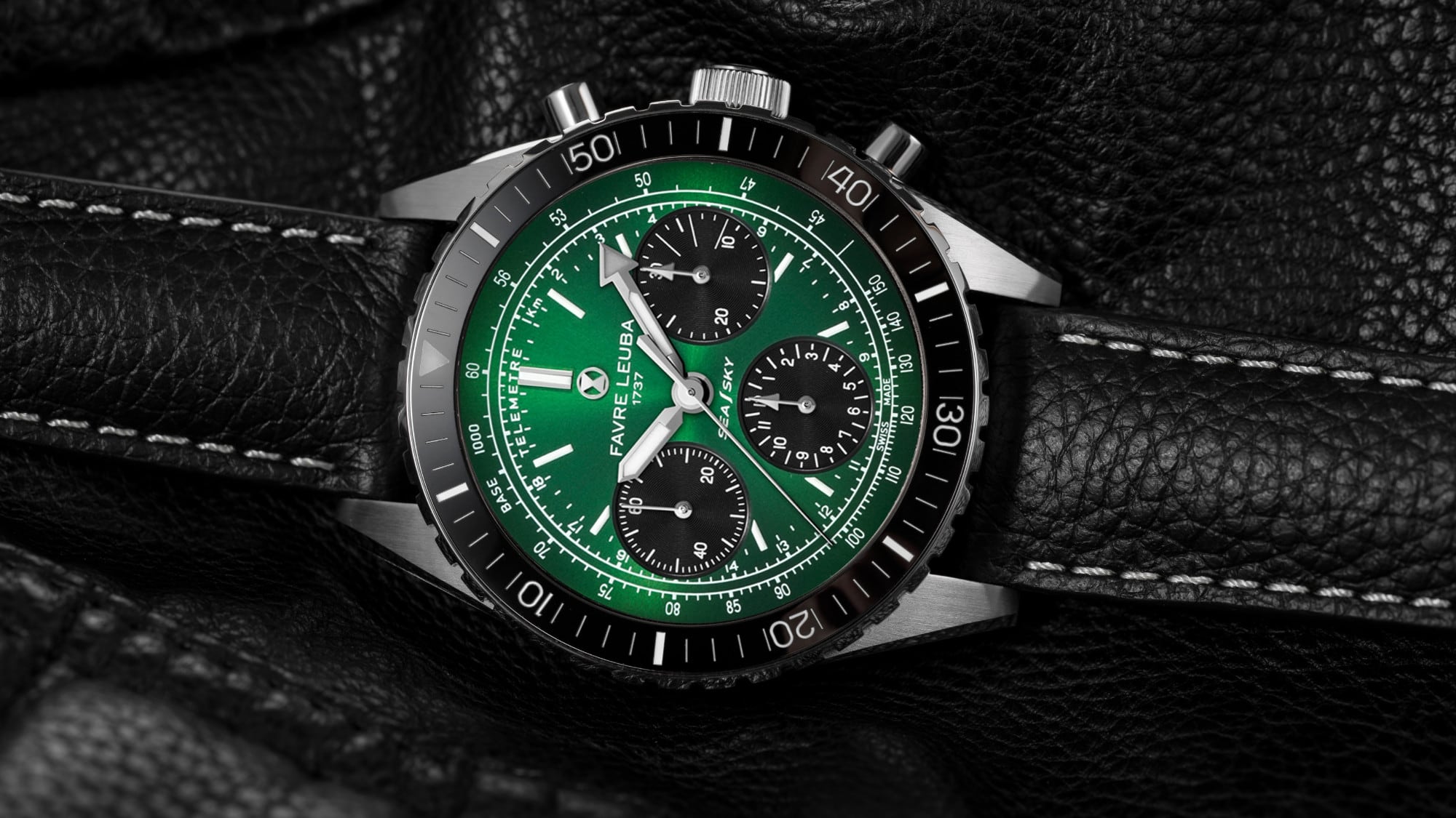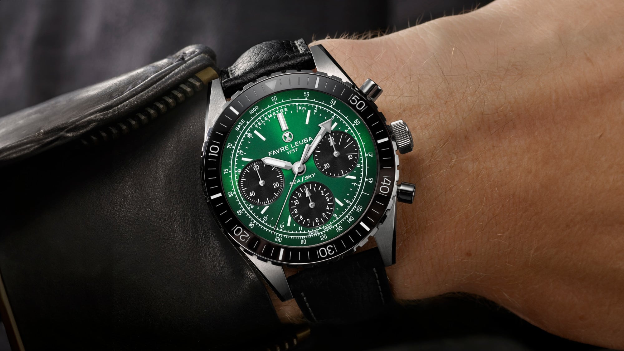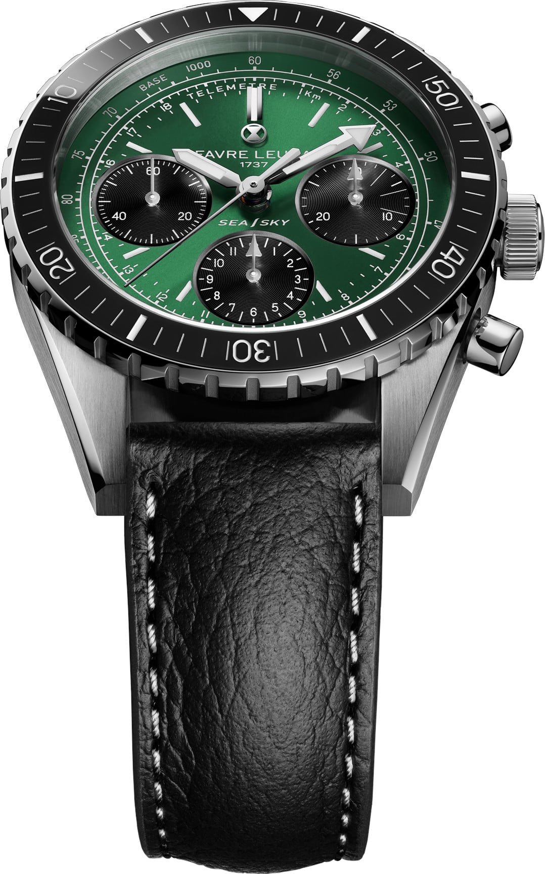 Favre Leuba has been making high-precision chronograph watches since 1925, when we released our first monopusher chronograph. In the 1930s, we introduced the two-pusher mechanism, and in the early 1940s, we developed hand-wound chronographs with a symmetrical bicompax display. However, it wasn’t until the 1960s that the original Sea Sky was created, a time when the functionality and design of Favre Leuba watches were making a lasting impact on the watch industry. The introduction of Sea Sky brought a unique watch style that combined the functionality of a diver’s watch with that of a chronograph. The new Sea Sky collection celebrates this legacy of innovation with designs that embody precision, sophistication, and a strong sense of adventure.