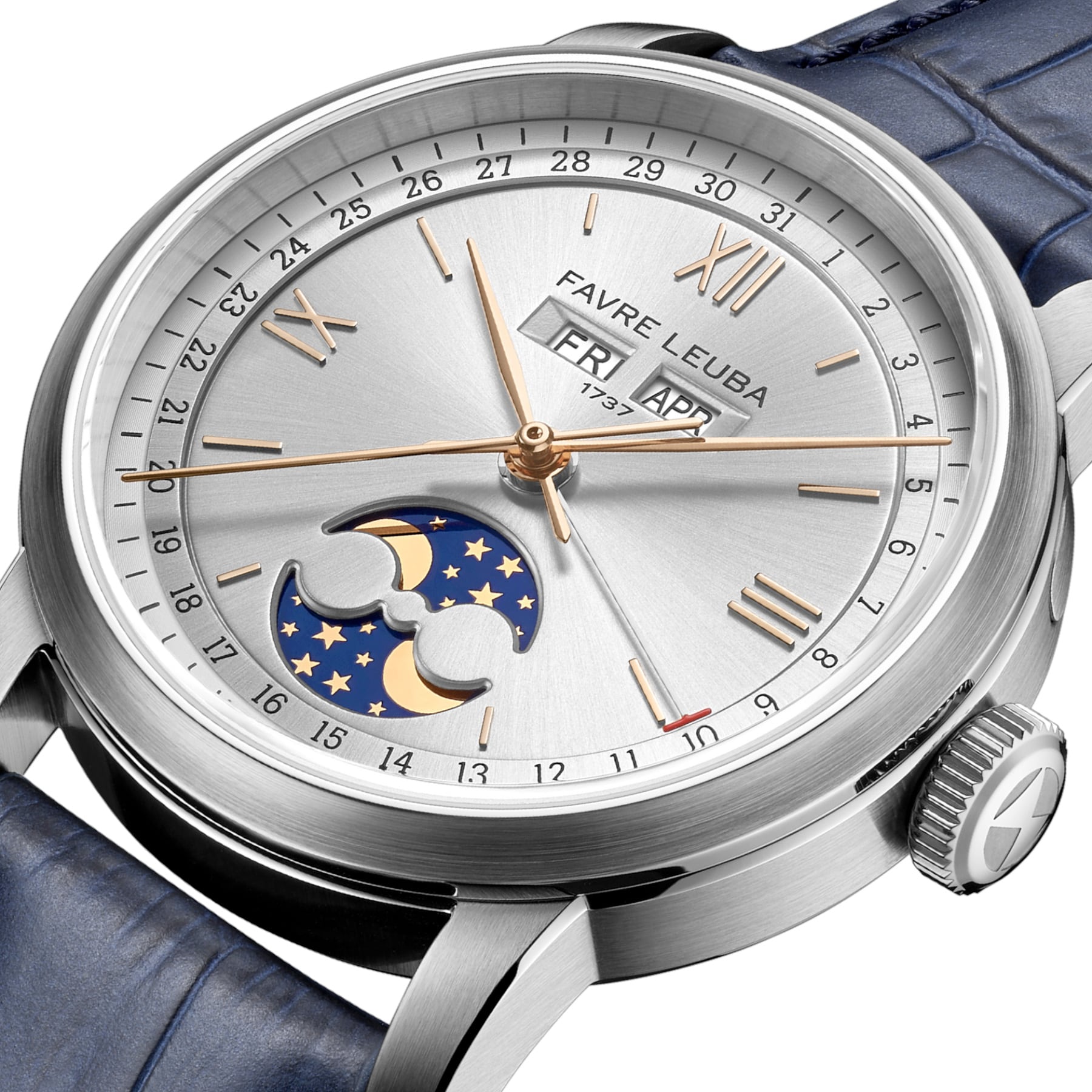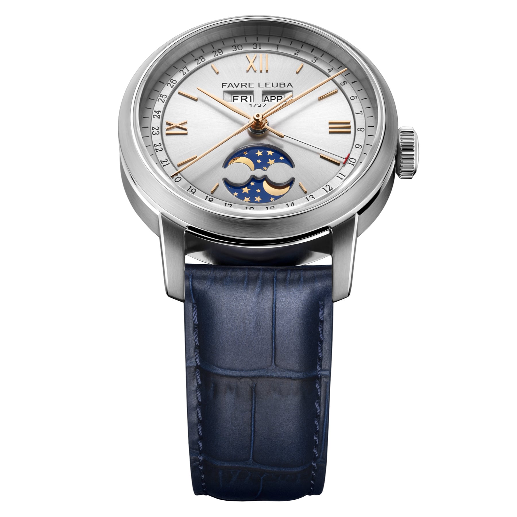 The 1737 revisits one of Favre Leuba’s most revered complications, drawing direct inspiration from the brand’s triple calendar and moon phase watches produced during the 1950s. Its name references the year Abraham Favre began the family’s watchmaking lineage, anchoring the watch within nearly three centuries of uninterrupted heritage. The 1737 presents a classical complication in a form that feels relevant, refined, and purposefully modern.
