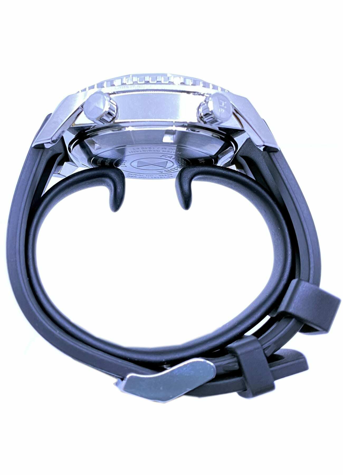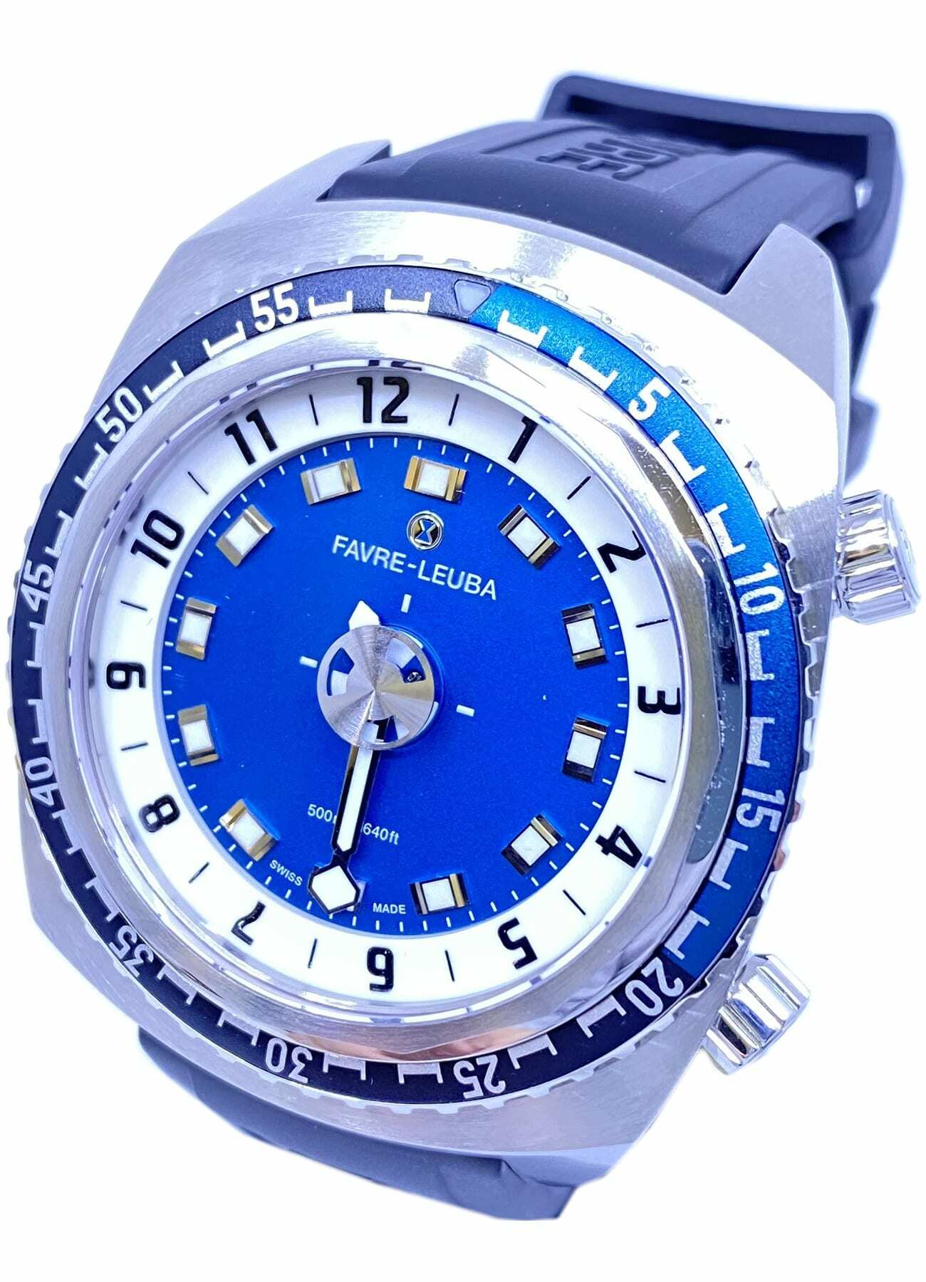 - This timepiece features a 46mm steel case paired with a high quality rubber strap. It showcases a distinctive blue dial and is powered by a precise automatic winding movement. The watch is designed with a water resistance of up to 500m.
