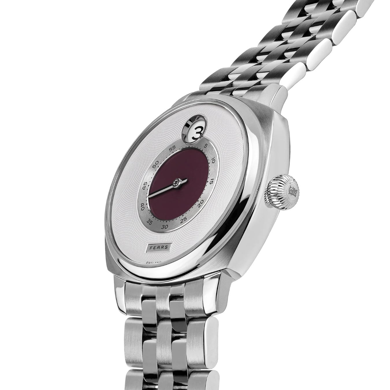 The Fears Brunswick 40.5 Jump Hour again takes centre-stage in the Fears collection as the Brunswick 40.5 'Barleycorn Plum' sees the design language evolve a step further as we embark on the next chapter of the Jump Hour.