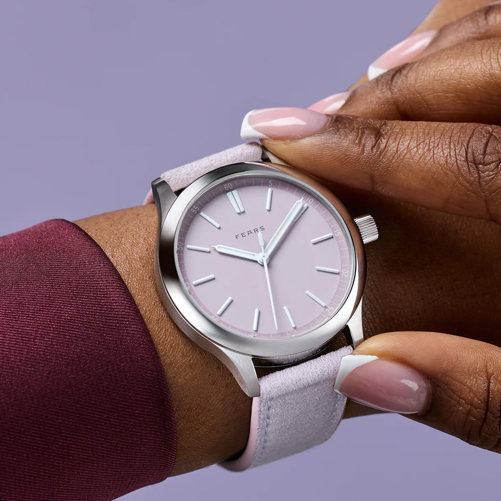 Discover the Fears Redcliff 39.5 “Pale Lilac”, a contemporary British timepiece that blends refined elegance with a fresh, modern aesthetic. Part of the new pastel collection, this version features a soft Pale Lilac dial, bringing a subtle yet distinctive pop of color to a clean, minimalist design—perfect for everyday wear with a unique personality.