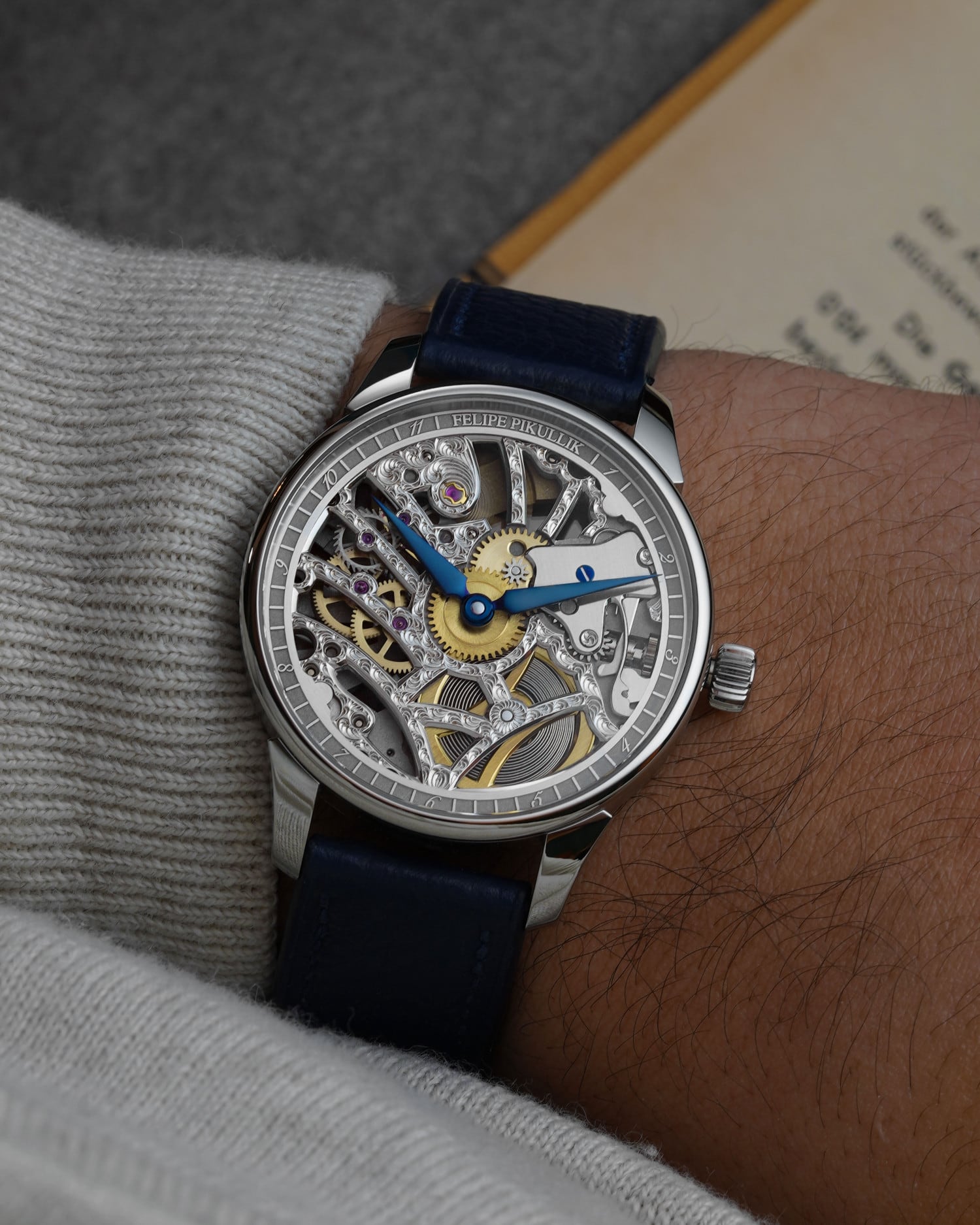 The FPSK Series (Felipe Pikullik Skeleton) is a yearly celebration of mechanical art, featuring fully hand-skeletonized timepieces that reflect Felipe Pikullik’s deep commitment to traditional watchmaking and refined craftsmanship. Since its introduction in 2022, the series has established itself as a central part of the collection—reimagining classic techniques through contemporary execution and artistic detail.