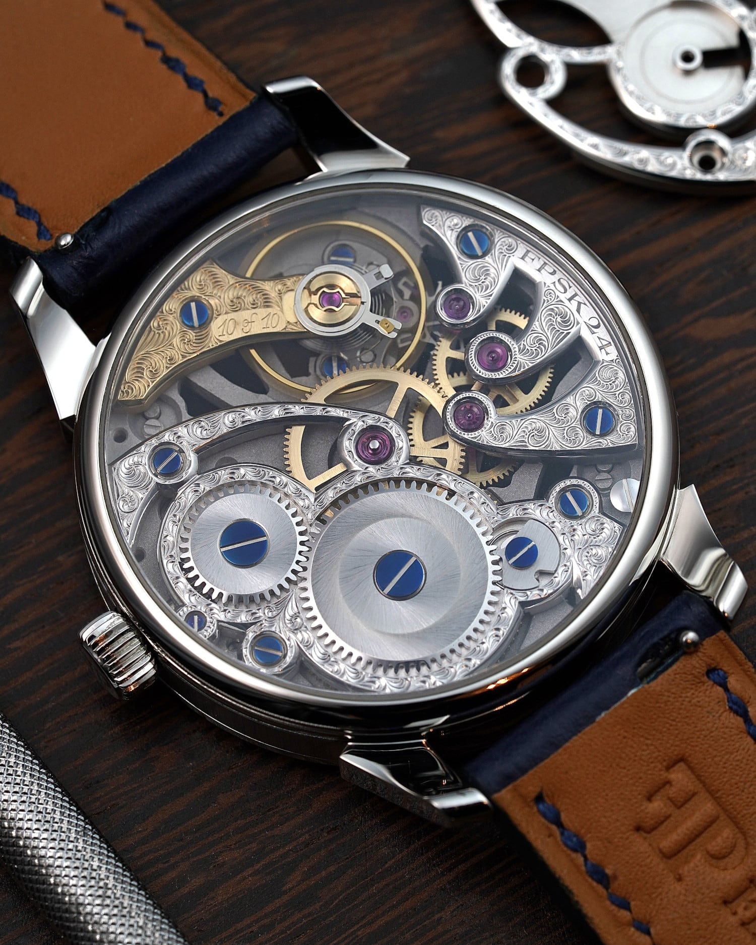 Every component in the FPSK24 is carefully shaped and finished by hand using time-honored methods. From hand-applied bevels to frosted surfaces and engraved details, the watch reflects Felipe’s mastery of skeletonization—a technique he began perfecting early in his career. Unlike automated processes, this approach demands precision, patience, and deep material understanding.