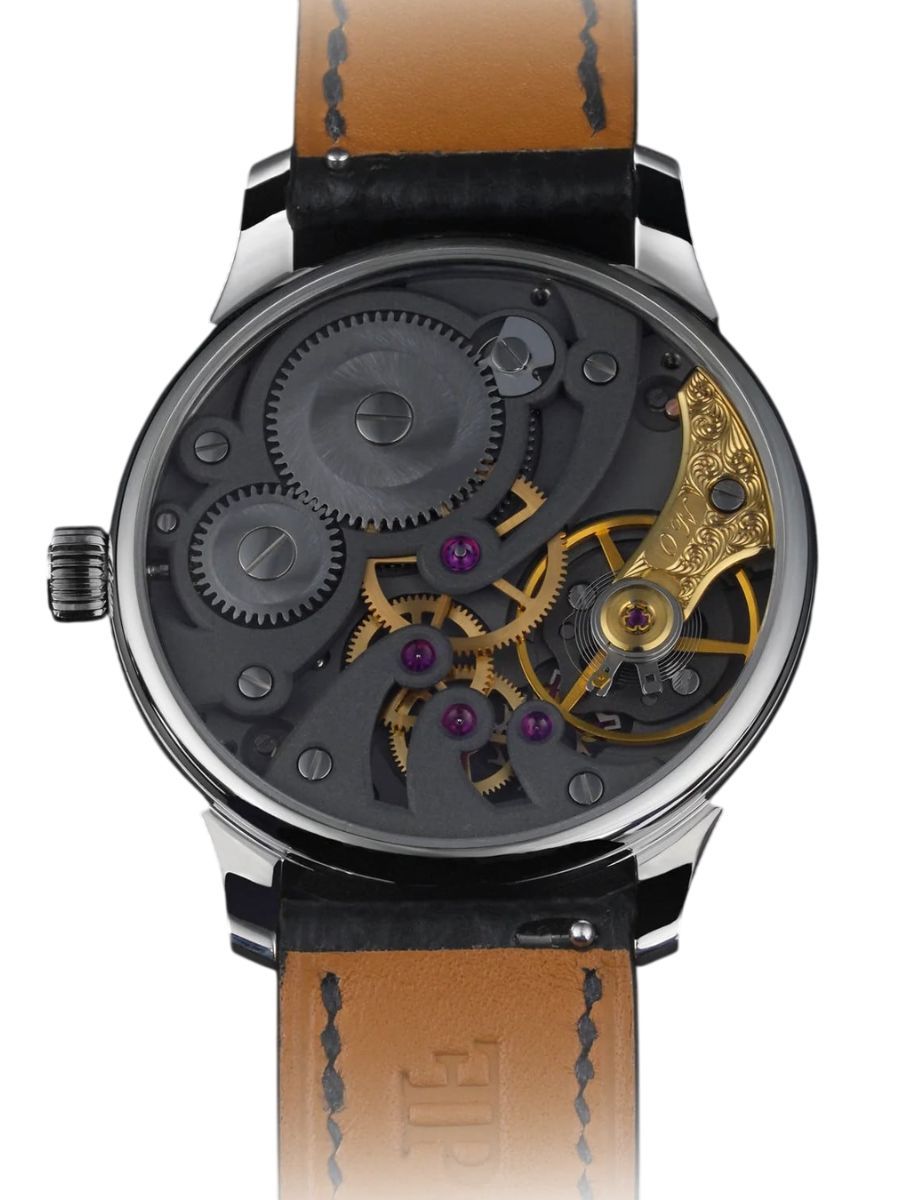 The movement of the FP Klassik embodies Felipe Pikullik’s unwavering commitment to craftsmanship and technical innovation. Every detail has been meticulously considered, from the precisely hand-skeletonized bridges to the sharp, refined interior angles achieved through expert hand beveling. The sandblasted movement plates, adorned with a rich black rhodium-plated finish, create a striking contrast that enhances the overall depth and texture of the design.