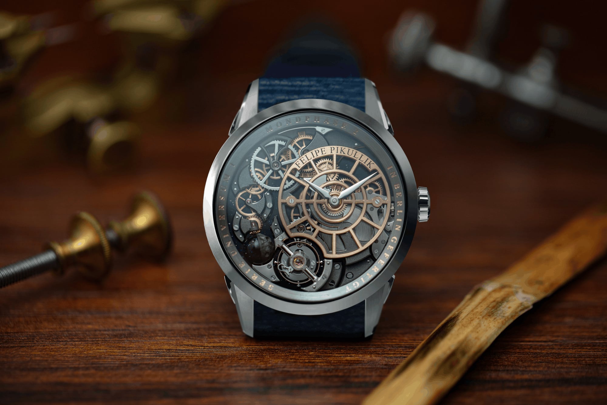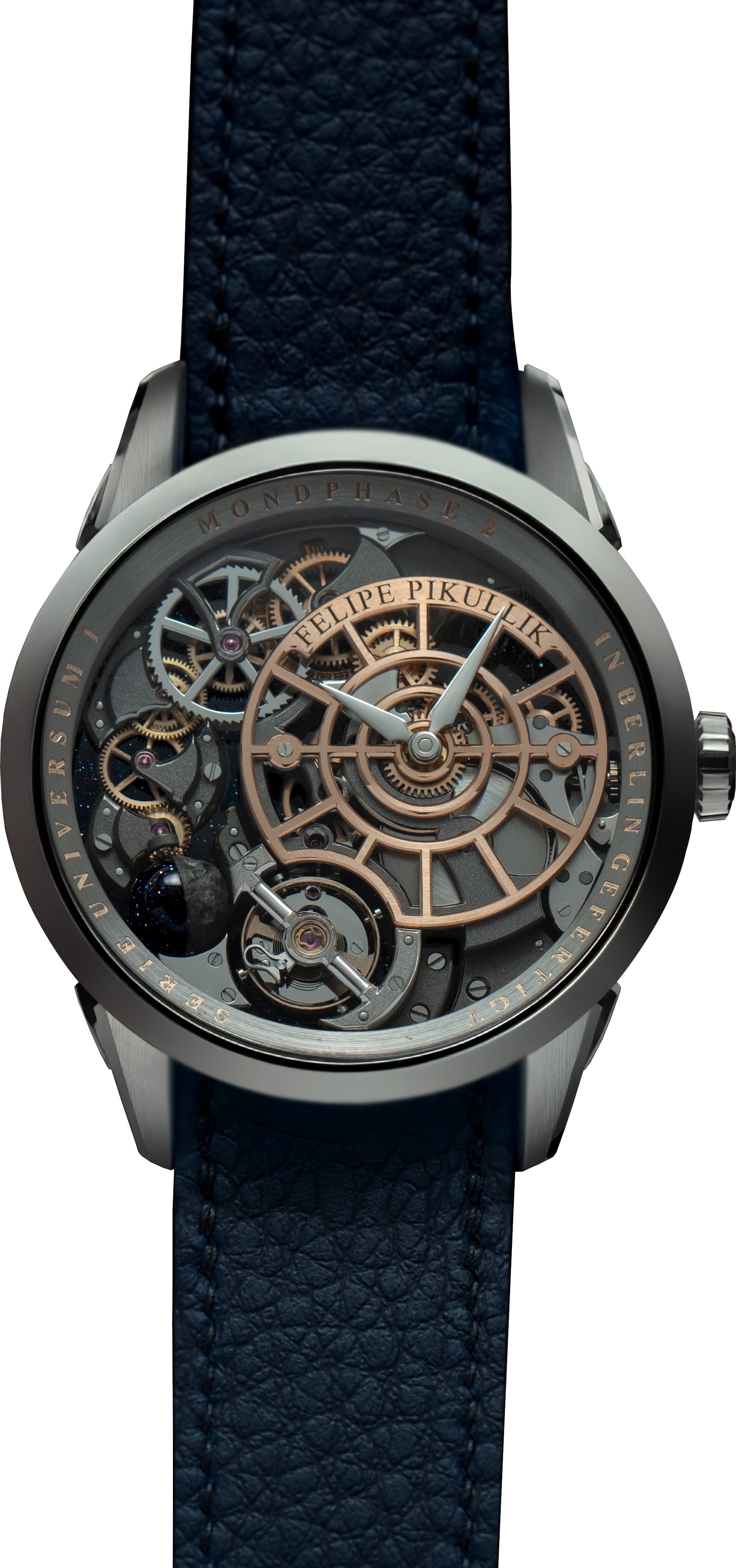 The Moonphase II represents the culmination of years of ambition and experimentation. Until now, Pikullik’s work centered on skeletonized designs – beautiful reinterpretations of existing movements with added in-house components including modified bridges, base plates, and balance cocks. Designing his own movement, Kaliber FPMP2, liberated the watchmaker to reimagine not only what is seen, but how it is seen. Each gear of the going train, each bridge and plate, is conceived with both mechanical function and aesthetics in mind. The result is a deeply three-dimensional landscape, a whole universe within a watch, where depth, light, and mechanical motion coexist in harmony.