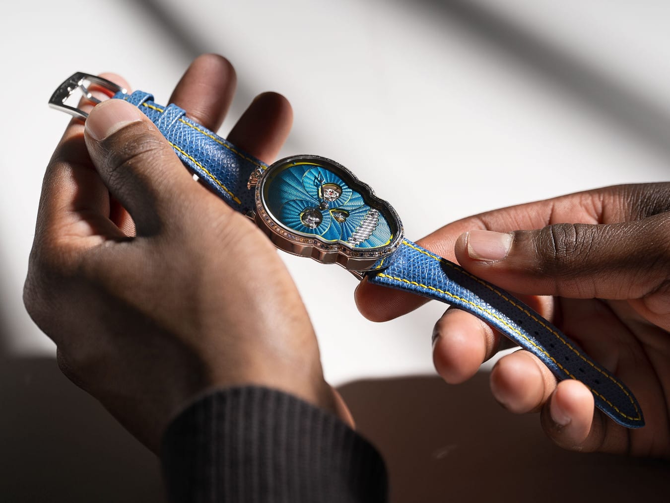 PETIT SKULL TROPICAL re–interprets the traditional guillochée technique with a twist, using the patterns to carve out the features of the skull, instilling each watch with its own distinct character.