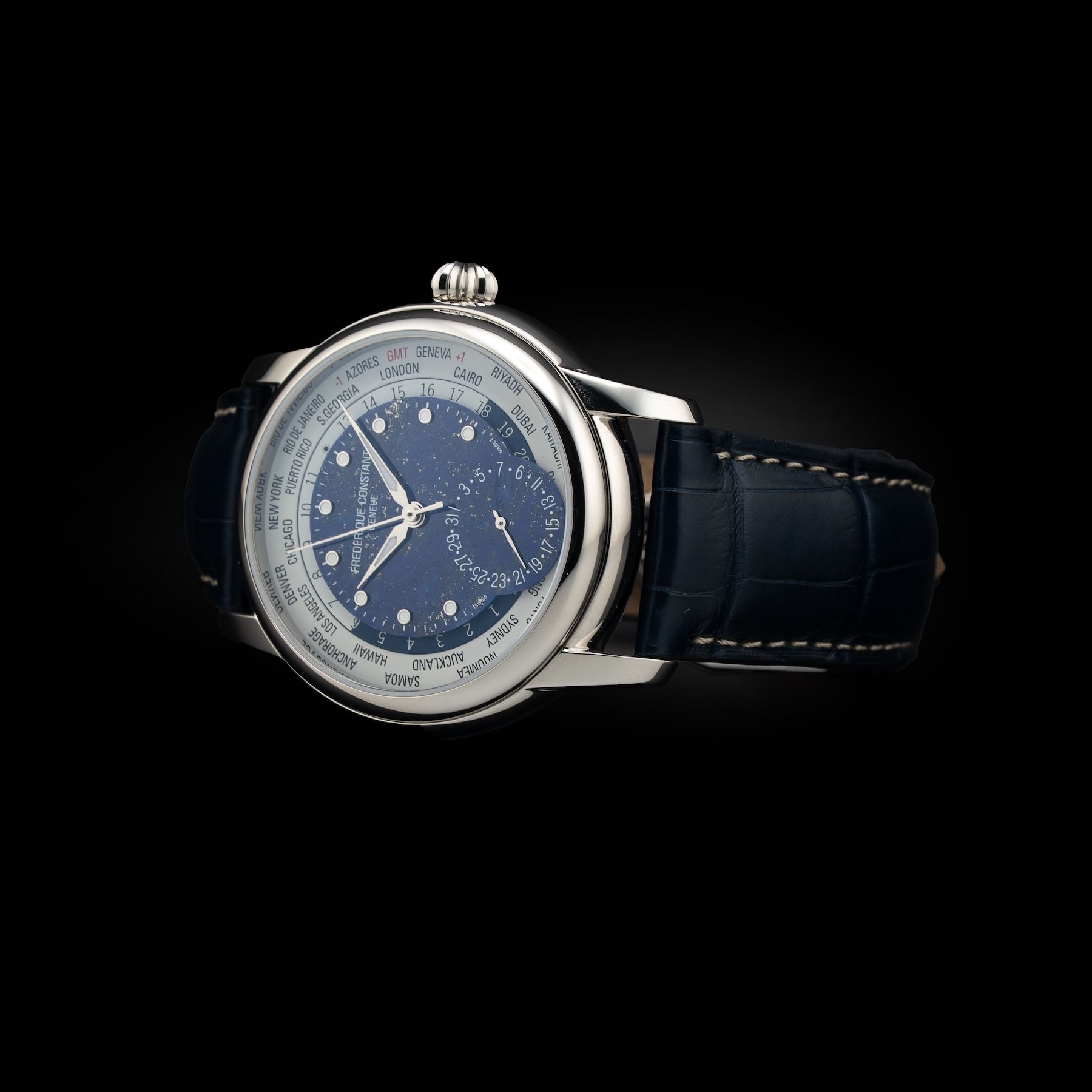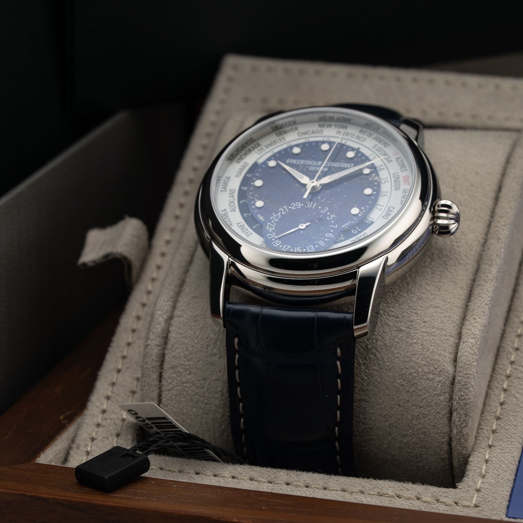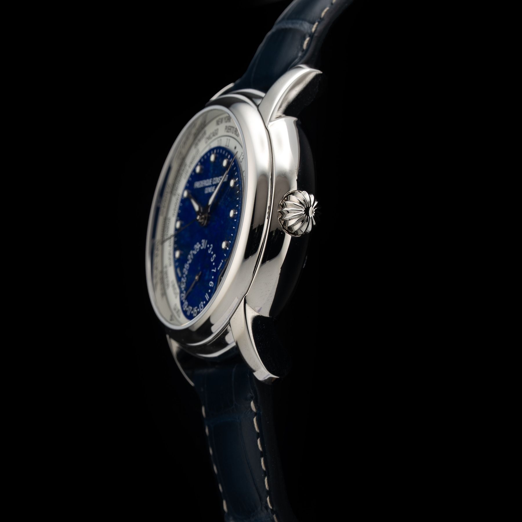 This Frederique Constant Classic Worldtimer Lapis Lazuli Limited Edition FC-718LA4H6 is in GREAT condition. This watch includes its Original Box, Original Papers and Warranty Card Not Dated. This watch has been fully authenticated and certified by Exquisite Timepieces. Please note, the photos shown are of the actual watch you will receive.