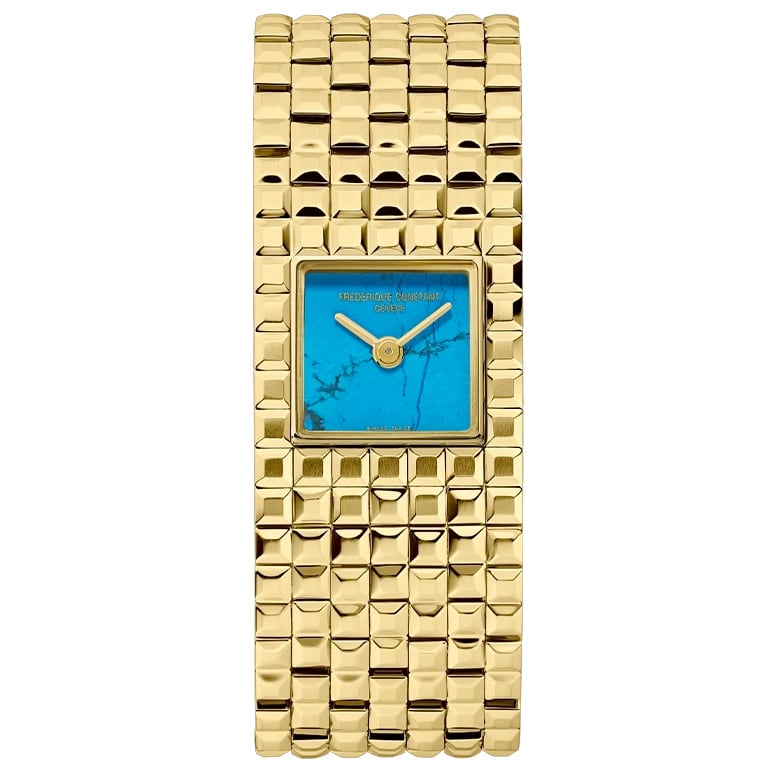 Frederique Constant pushes watchmaking boundaries. This timepiece fuses a faceted bracelet with the Clou de Paris motif and the exclusivity of a fine stone dial. A high-end piece designed to enhance every wrist with irreverent elegance.