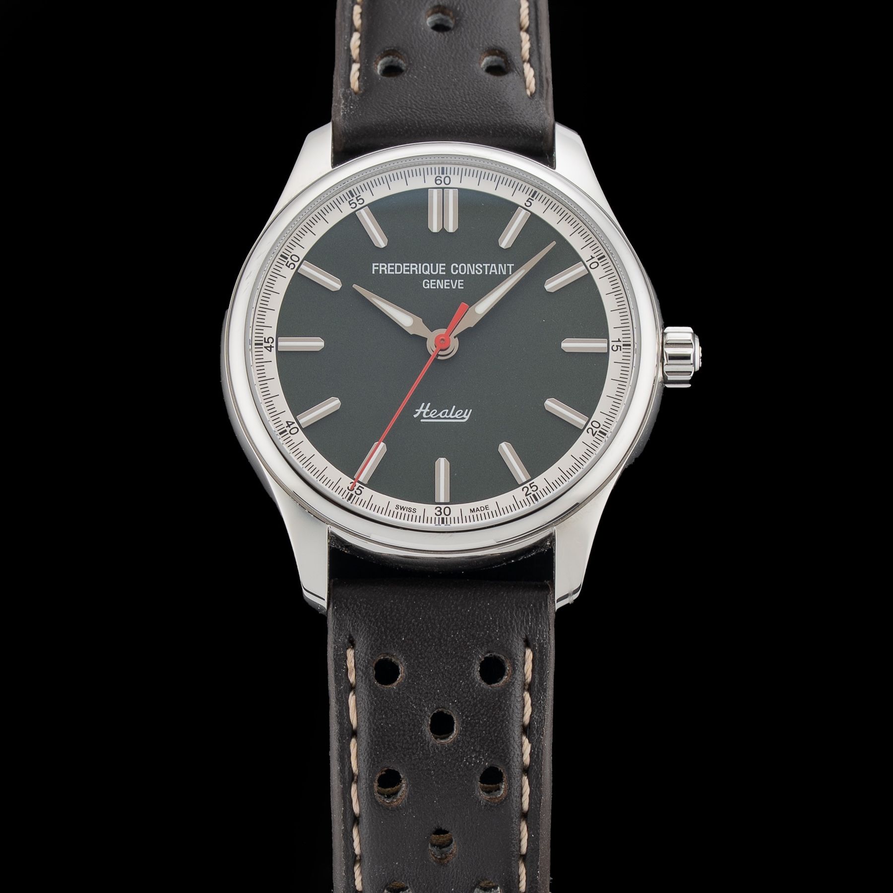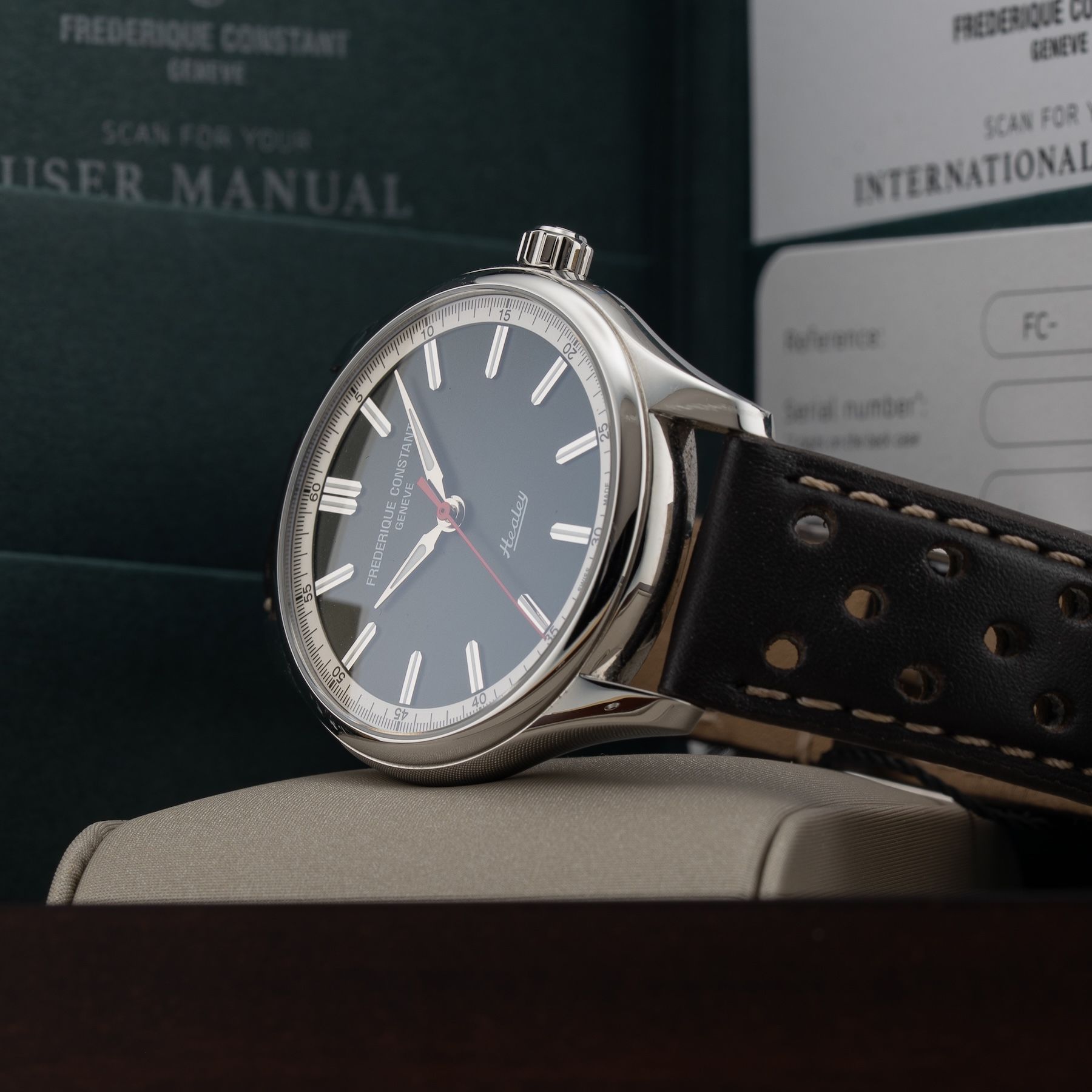 This Frederique Constant Classics Vintage Rally Healey Chronograph FC-301HGRS5B26 is in GREAT condition. This watch includes its Original Box, Original Papers and Warranty Card Not Dated. This watch has been fully authenticated and certified by Exquisite Timepieces. Please note, the photos shown are of the actual watch you will receive.