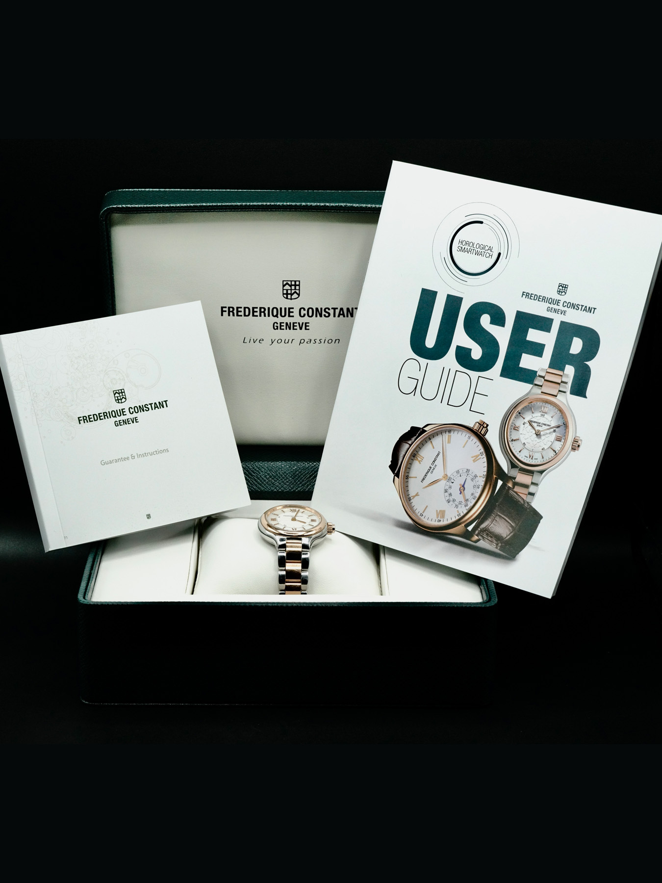 This Frederique Constant Horological Smartwatch FC-281WH3ER2B is in GOOD condition. This watch includes its original box, instruction manual, and guarantee not dated. Extra stainless steel bracelet links. This watch has been fully authenticated and certified by Exquisite Timepieces.