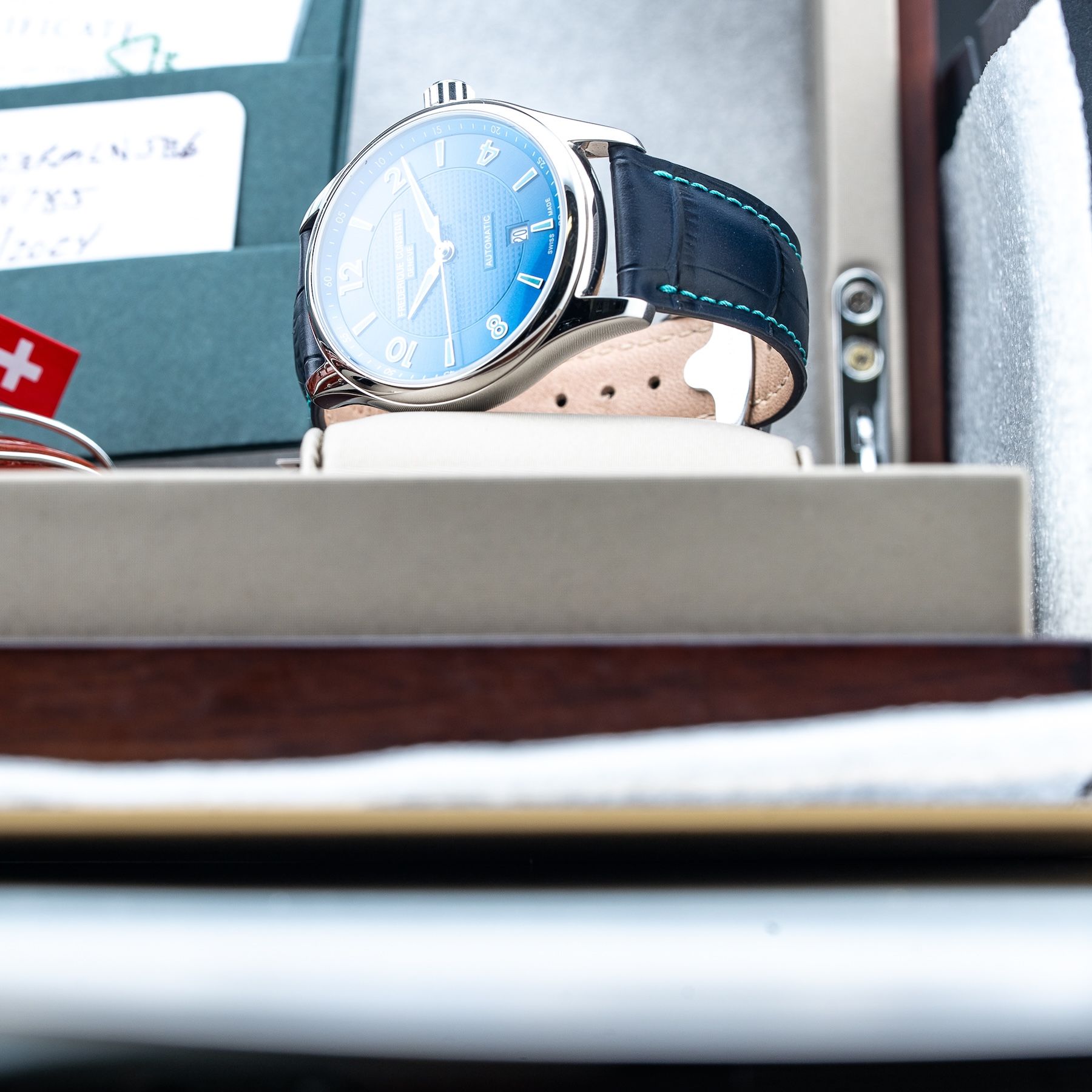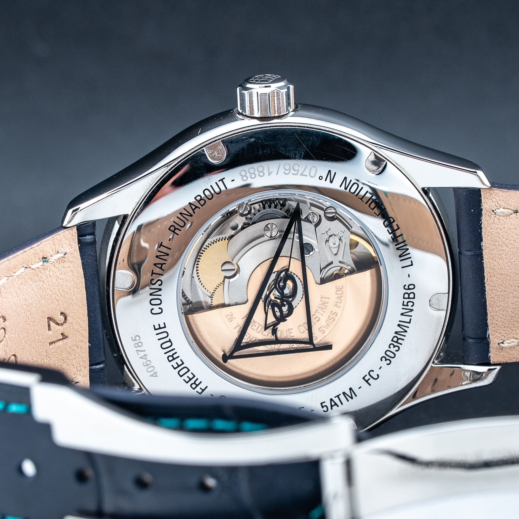 This Frederique Constant FC-303RMLN5B6 Runabout is in GREAT condition. This watch includes its Original Box, Original Papers and Warranty Card Dated 11/5/2024. This watch has been fully authenticated and certified by Exquisite Timepieces. Please note, the photos shown are of the actual watch you will receive.