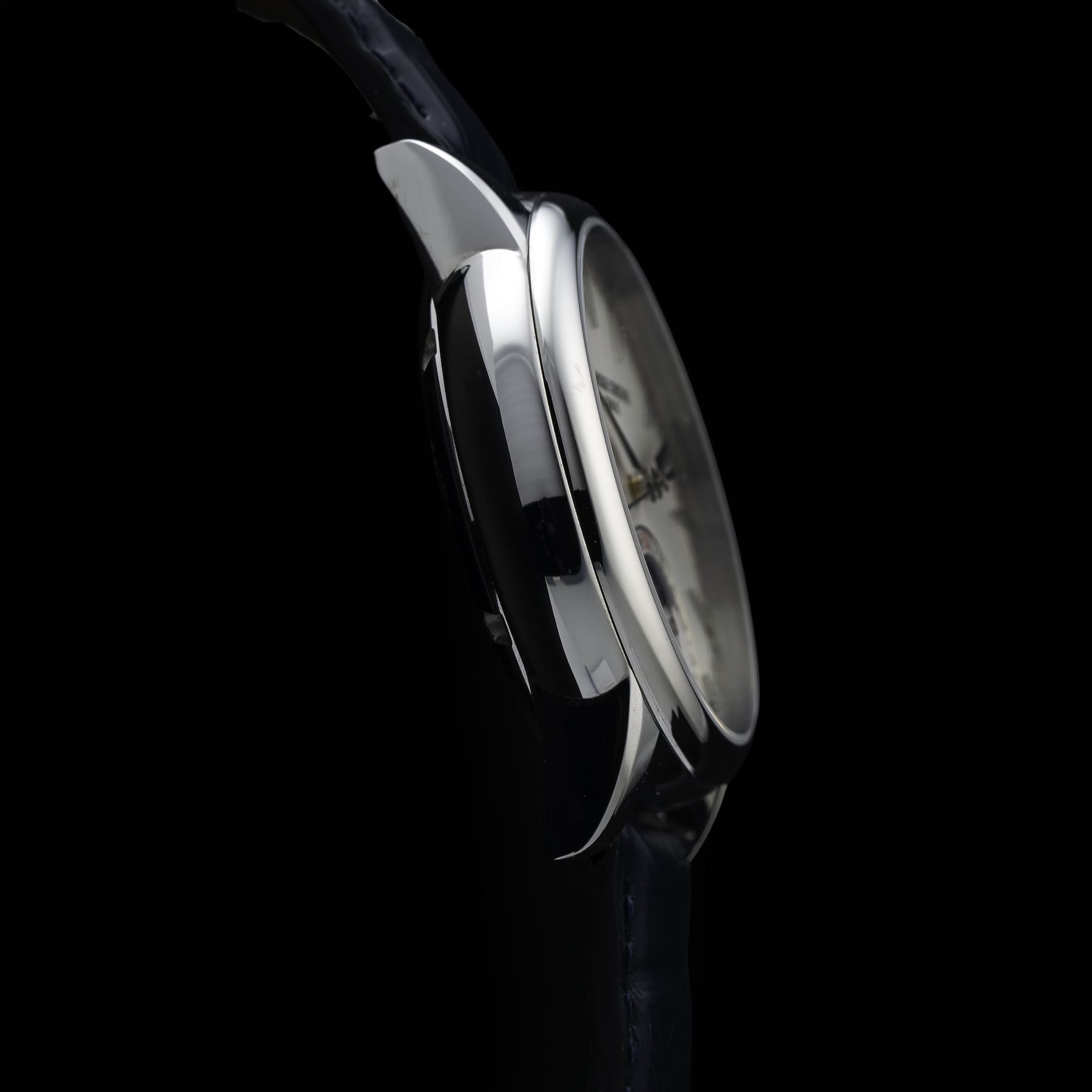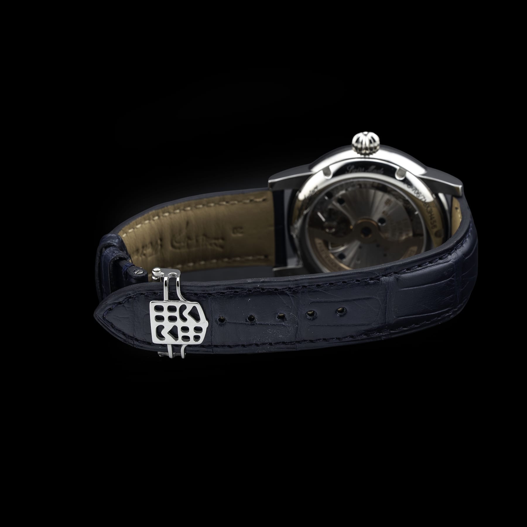 This watch features a 40mm stainless steel case on leather strap. This watch also sports a silver dial. Powered by an automatic movement. Water resistance up to 50 meters.