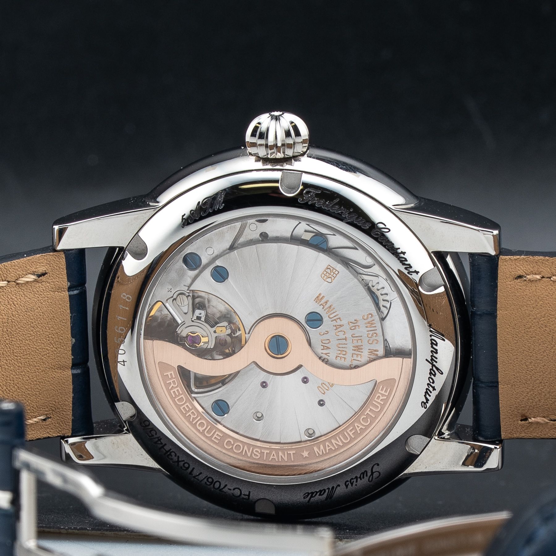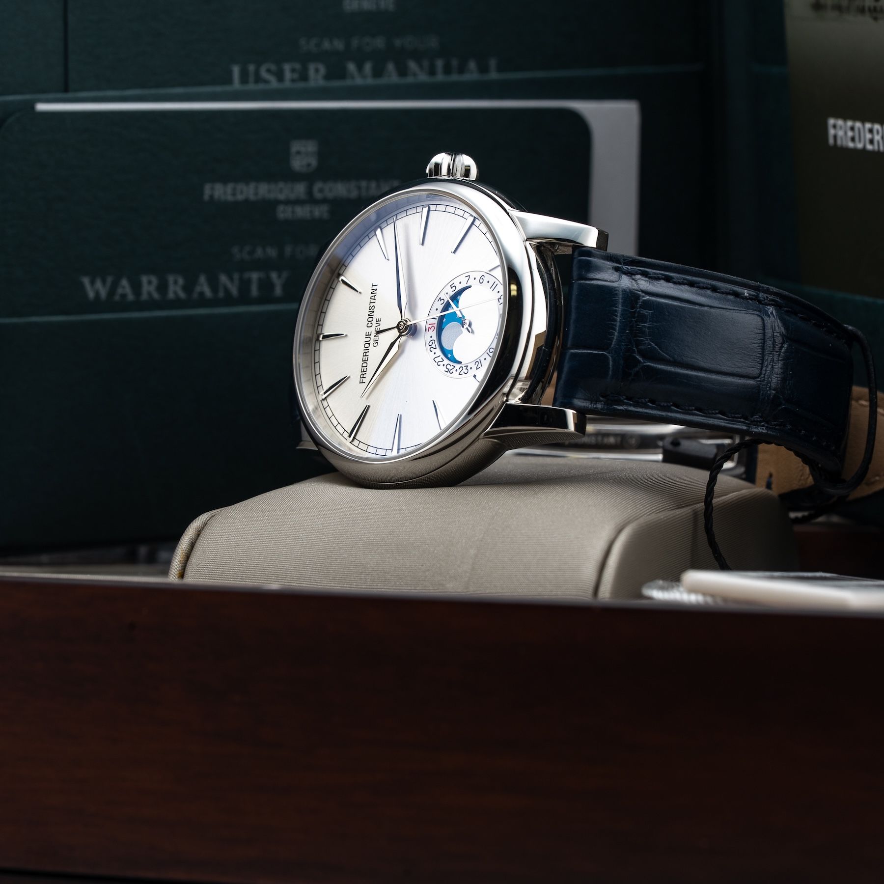 This Frederique Constant FC-716S3H6 Classic Moonphase Date 40mm is in GREAT condition. This watch includes its Original Box, Original Papers and warranty card not dated. This watch has been fully authenticated and certified by Exquisite Timepieces. Please note, the photos shown are of the actual watch you will receive.