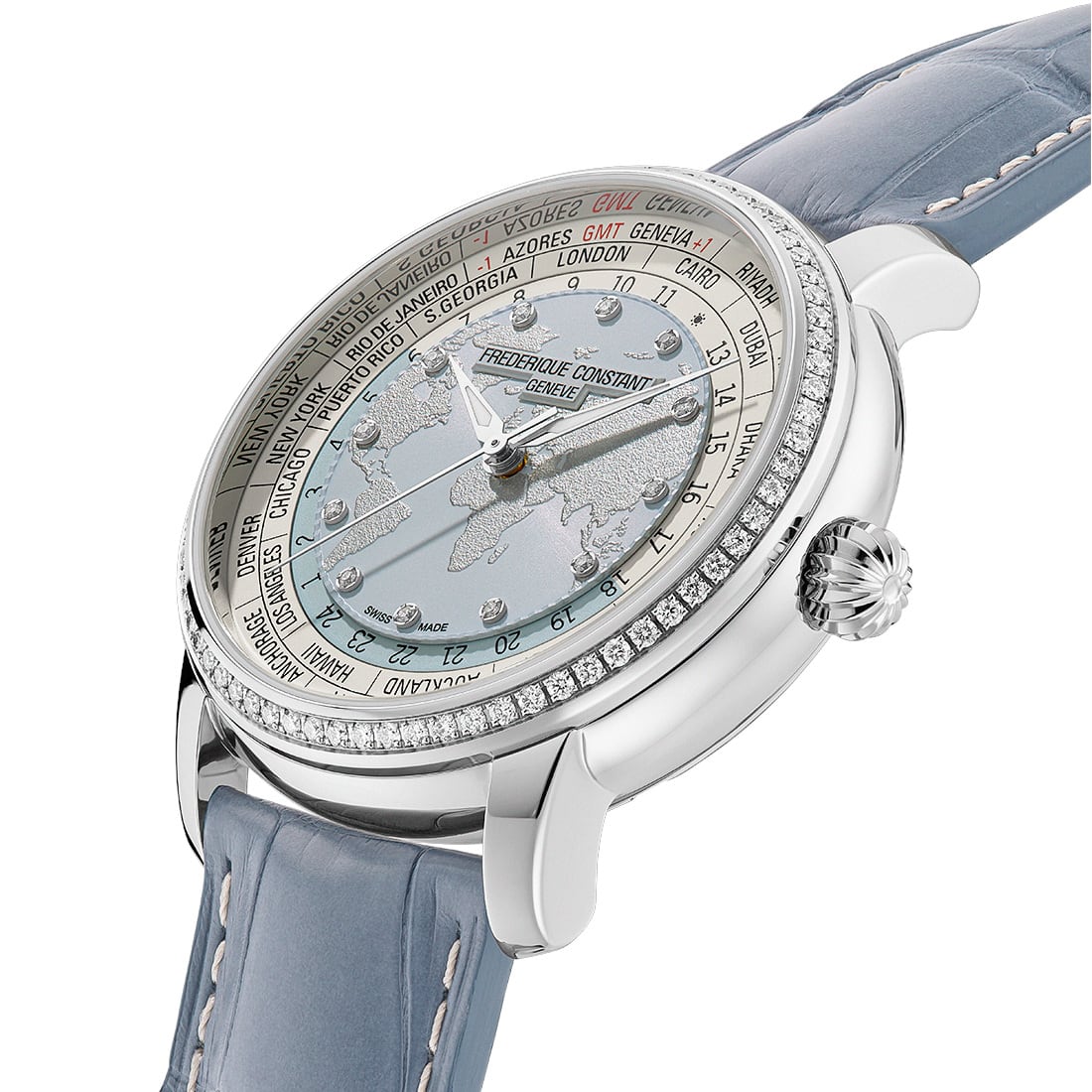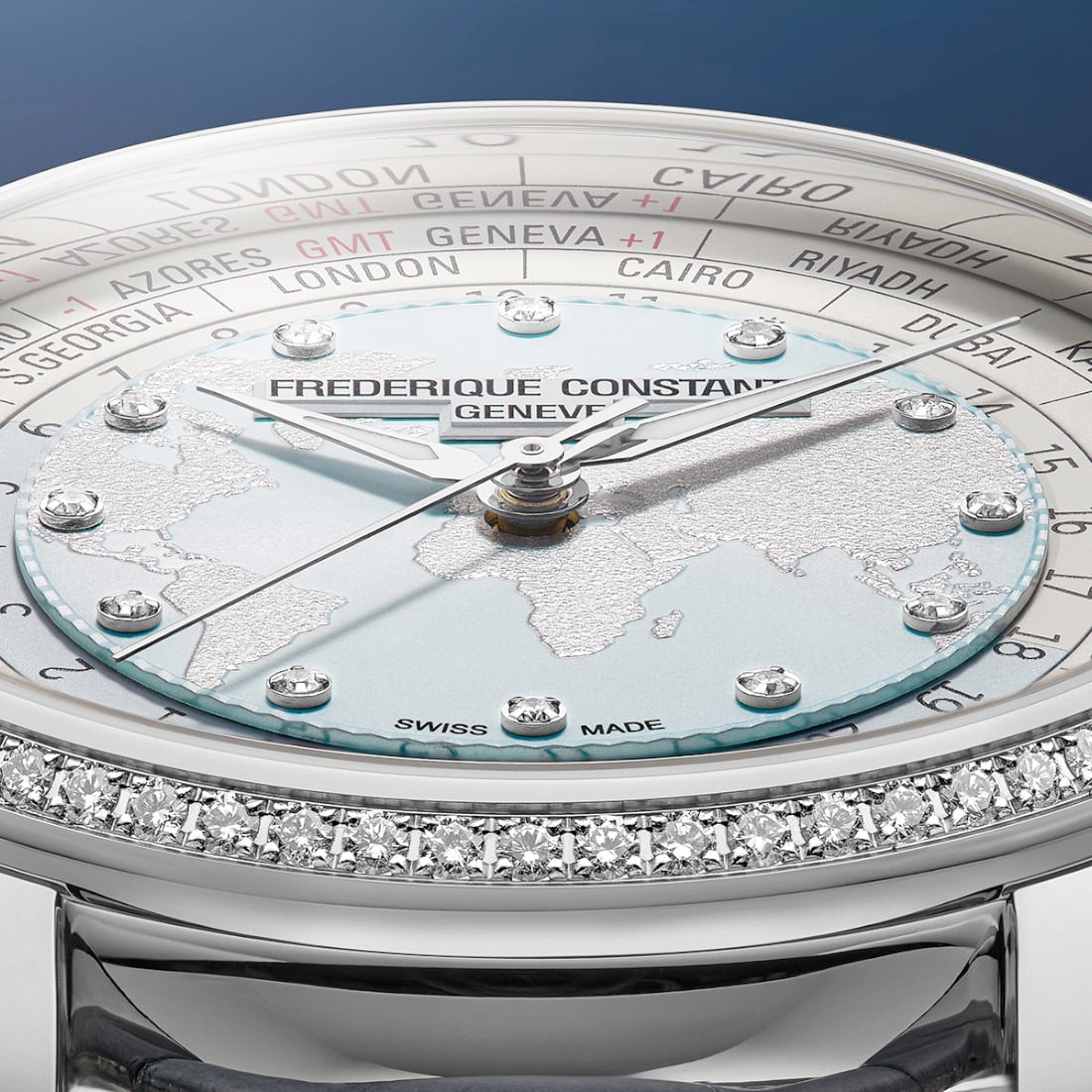 Entirely conceived, developed, and assembled within our manufacture in Plan-les-Ouates, this timepiece embodies the perfect marriage of haute horlogerie and jewelry elegance. This exclusive edition is powered by the new Manufacture Caliber FC-719, the 35th movement developed in-house by the Maison since 1988. It now offers a remarkable 72-hour autonomy, ensuring reliability and functional power for three full days. Housed in a new polished case with redesigned 40 mm dimensions, this exceptional version is distinguished by a bezel set with 70 diamonds, bringing a unique brilliance to every movement of the traveler.