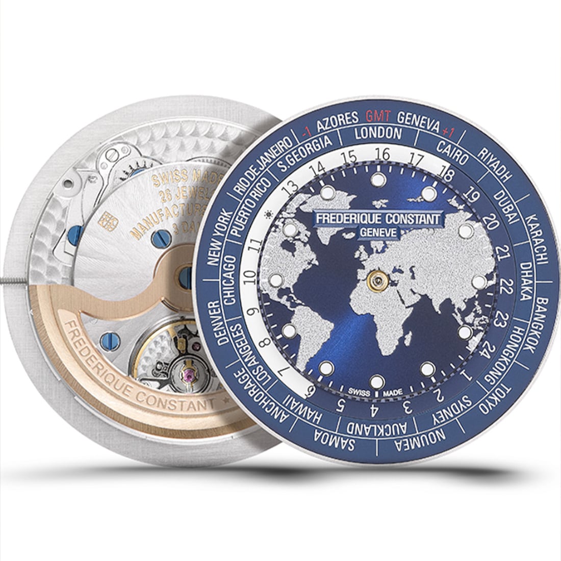 As Frederique Constant’s flagship model, the Classics Worldtimer is a testament to the entrepreneurial spirit and audacity of the Genevan Manufacture. This timepiece is now powered by the new FC-719 automatic movement, the 35th calibre developed in-house since 1988. This Haute Horlogerie engine offers an extended 72-hour power reserve, ensuring exceptional autonomy for long-haul travelers. Housed in a new polished stainless steel case—with a diameter refined to 40 mm for enhanced elegance—this version prioritizes wearing comfort and optimal legibility. Its clean, contemporary “no-date” dial showcases a world map in relief, providing an unobstructed view of the 24 world time zones.