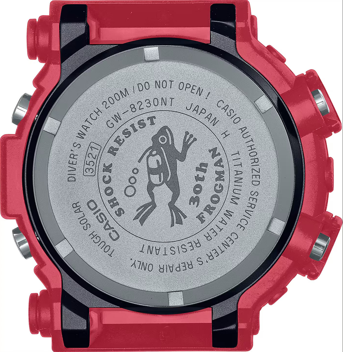 For this very special 30th anniversary design, the popular diving frog so familiar to FROGMAN fans is engraved on the case back and displayed with the LED backlight.