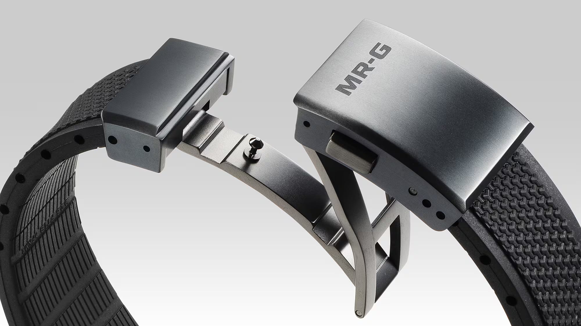 The MRGB2000RG is inspired by the traditional Japanese color of kurogane-iro, the deep shade of blue-green that iron takes on when heated to make traditional Japanese armor and helmets. A deep-layer hardening process and green diamond-like carbon (DLC) coating applied to the titanium exterior are used to capture this subtle hue.