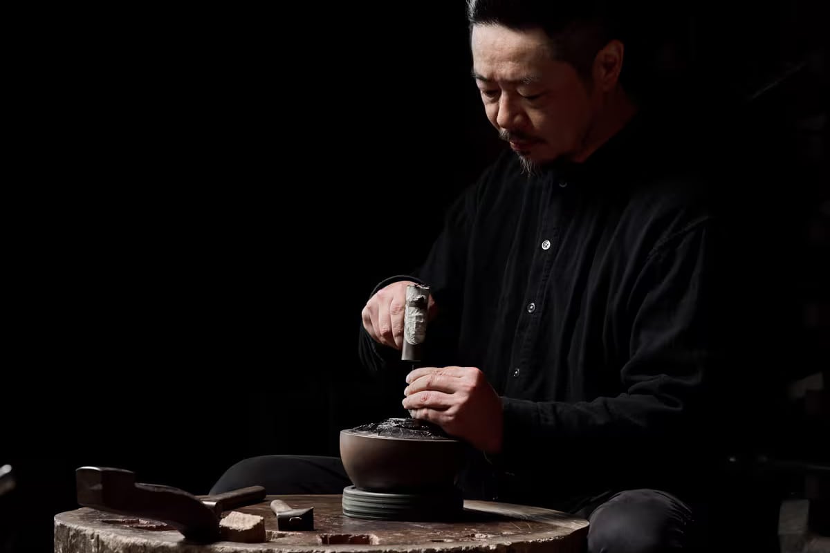Each timepiece is hand-hammered by master tsuiki artisan Kazuya Watanabe, whose “fluctuating” yuragi hammering technique creates a powerful texture that is both impactful and satisfying. His subtle and exacting skill delivers a look and feel that cannot be replicated by machine.