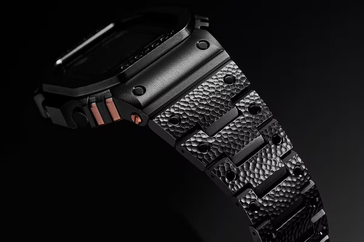 The striking, limited-edition MRGB5000HT stands above, a veritable master class in metal craftsmanship. Each timepiece features a bezel and bracelet that are individually hand-hammered in a unique relief pattern by a master of the traditional tsuiki* hammering technique. The result is a stunningly rugged and original textural appearance.